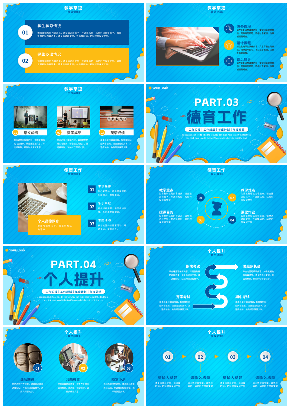这是一张2025简约清新蓝渐教师教学工作总结汇报PPT模板,包含2025、简约、清新、蓝渐、教师、教学、工作、总结、汇报、工作总结等主题内容,也可用作2025简约清新蓝渐、简约清新蓝渐教师、清新蓝渐教师教学工作、蓝渐教师教学工作总结、教师教学工作总结汇报、2025教师教学工作汇报、2025简约教师教学工作、简约清新蓝渐、清新蓝渐教师、蓝渐教师教学工作、教师教学工作总结、教学工作总结汇报、2025简约清新、2025教师教学工作、教师教学工作总结等PPT场景使用。 风云办公提供的2025简约清新蓝渐教师教学工作总结汇报PPT模板,下载格式为pptx,一共18页,作品中文字及图均可以修改和编辑,图片更改请在作品中右键图片并更换,文字修改请直接点击文字进行修改。