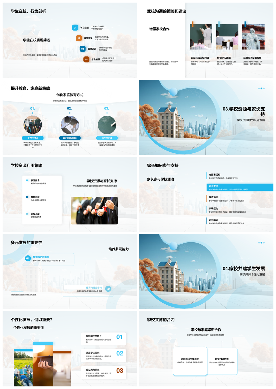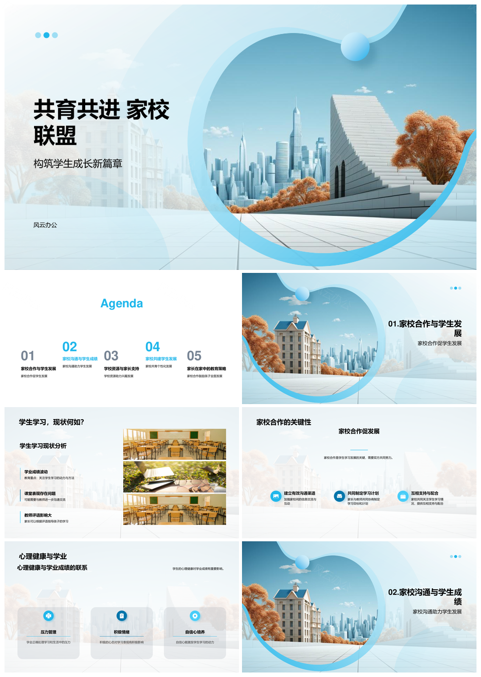 风云办公提供的家校共育联盟促学生发展成长PPT模板,下载格式为pptx,一共23页,作品中文字及图均可以修改和编辑,图片更改请在作品中右键图片并更换,文字修改请直接点击文字进行修改。