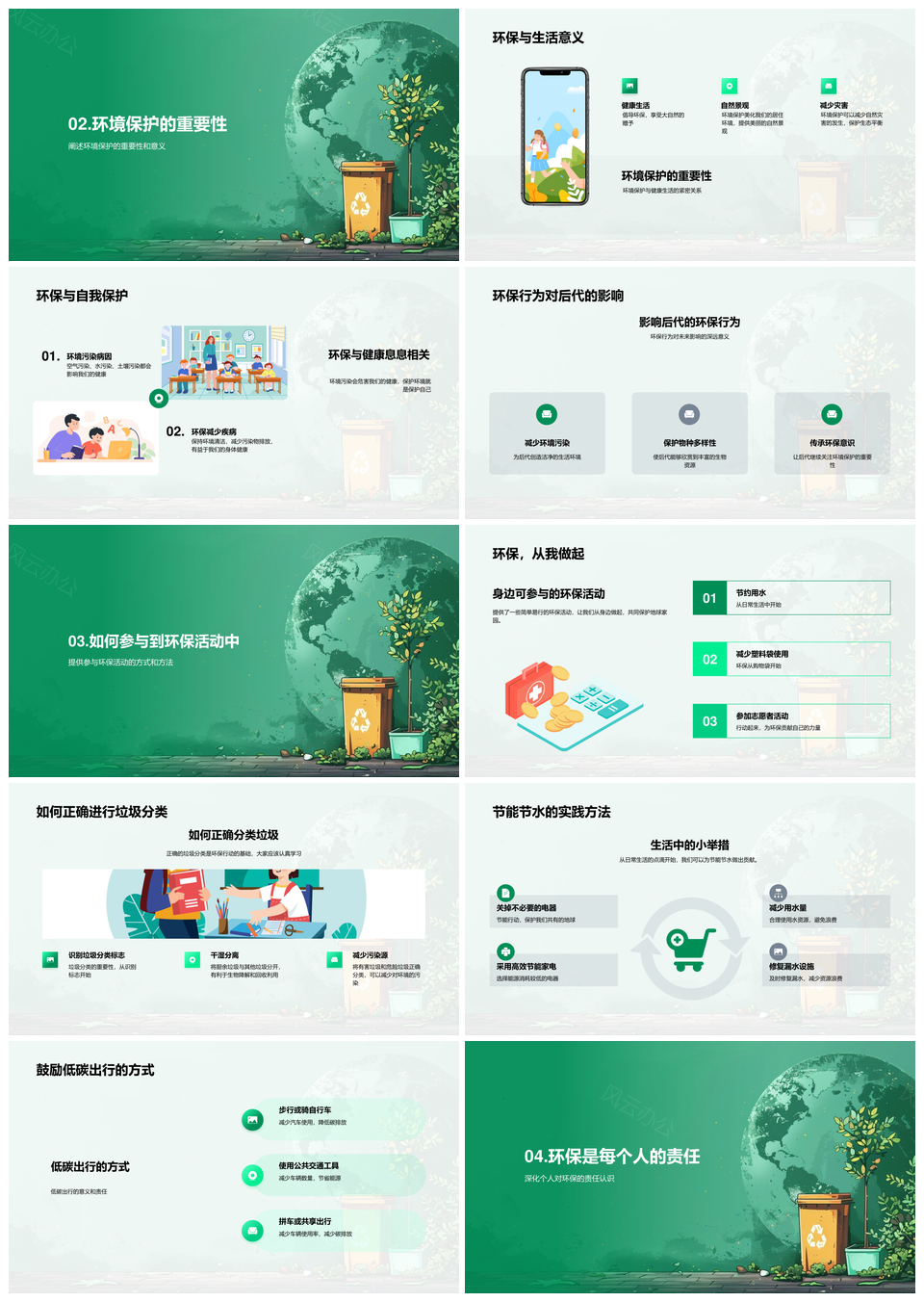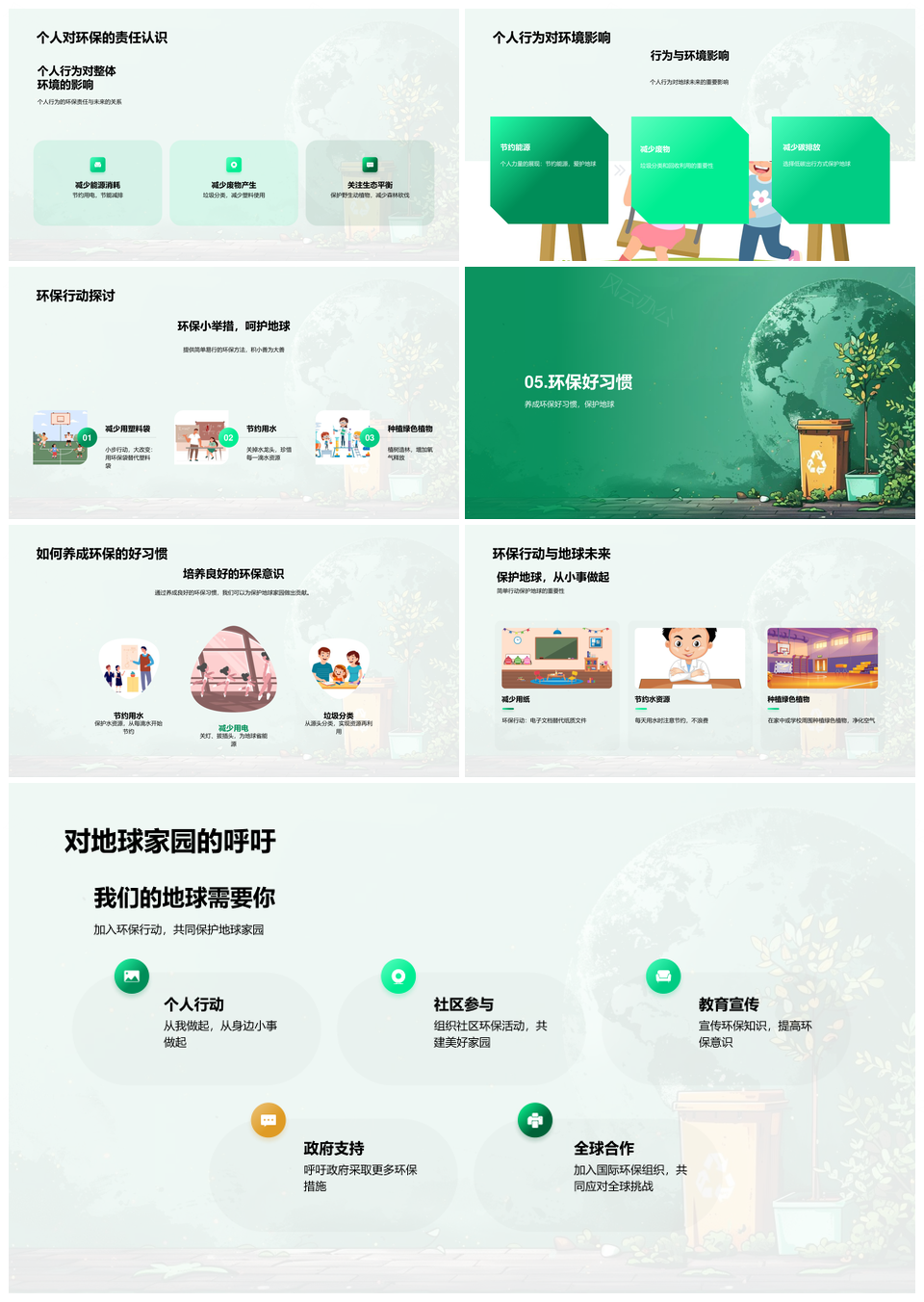 2025环保行动绿色出行垃圾分类节能减碳守护地球PPT模板