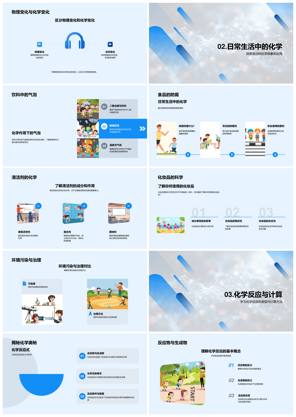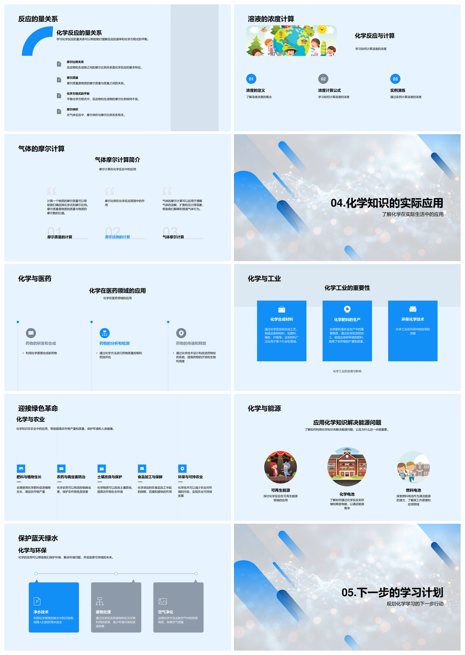 初中化学基础物质元素周期反应计算生活应用学习PPT模板推荐