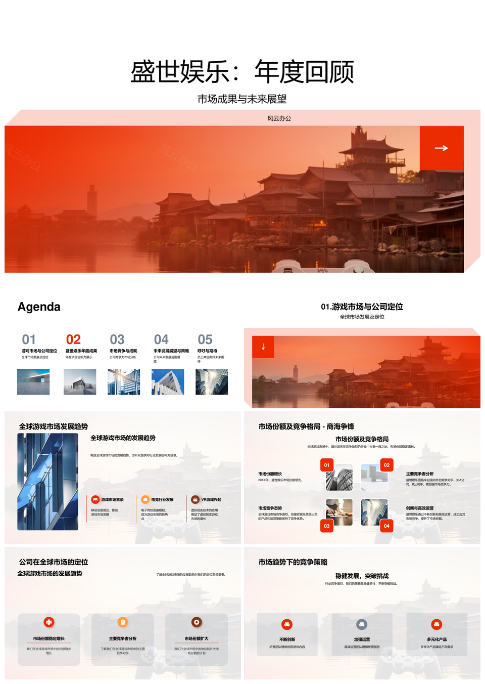 风云办公提供的盛世娱乐年度回顾市场成果与未来展望PPT模板,下载格式为pptx,一共28页,作品中文字及图均可以修改和编辑,图片更改请在作品中右键图片并更换,文字修改请直接点击文字进行修改。