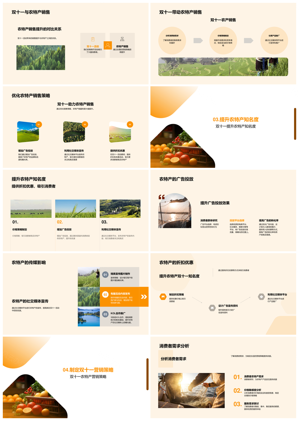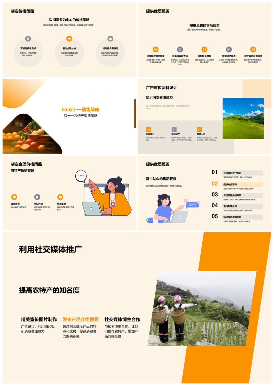 风云办公提供的双十一农特产营销策略提升销量知名度PPT模板,下载格式为pptx,一共25页,作品中文字及图均可以修改和编辑,图片更改请在作品中右键图片并更换,文字修改请直接点击文字进行修改。
