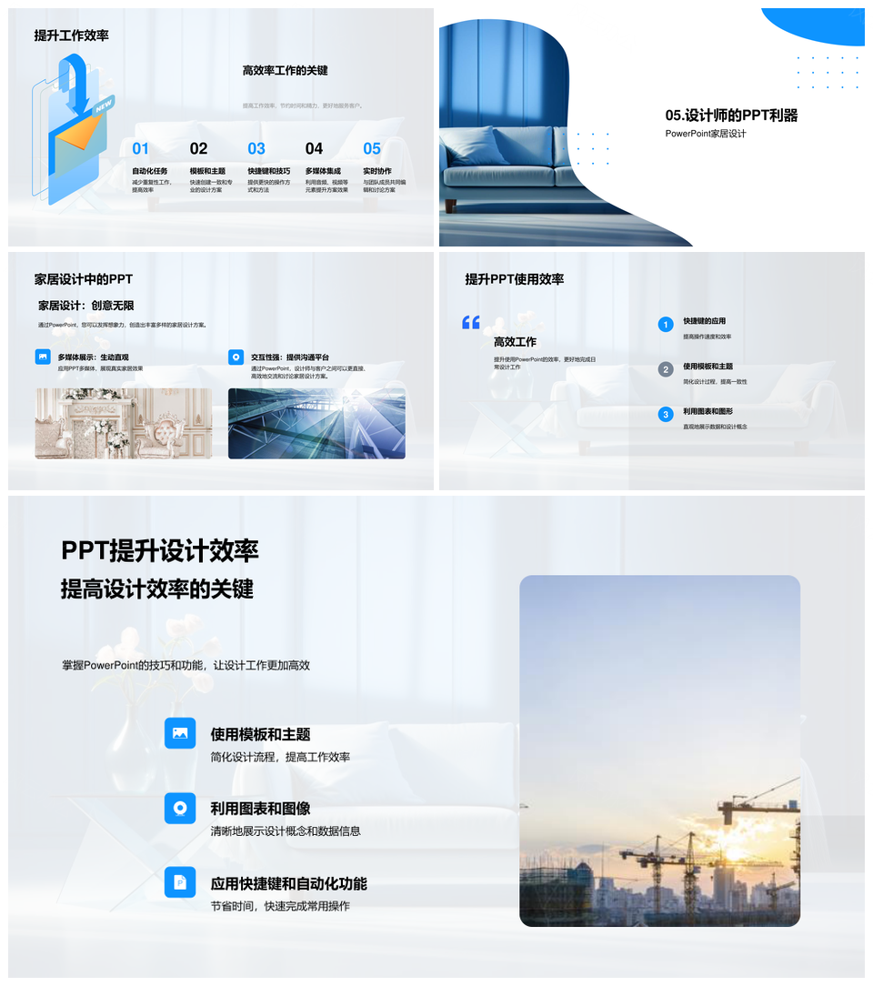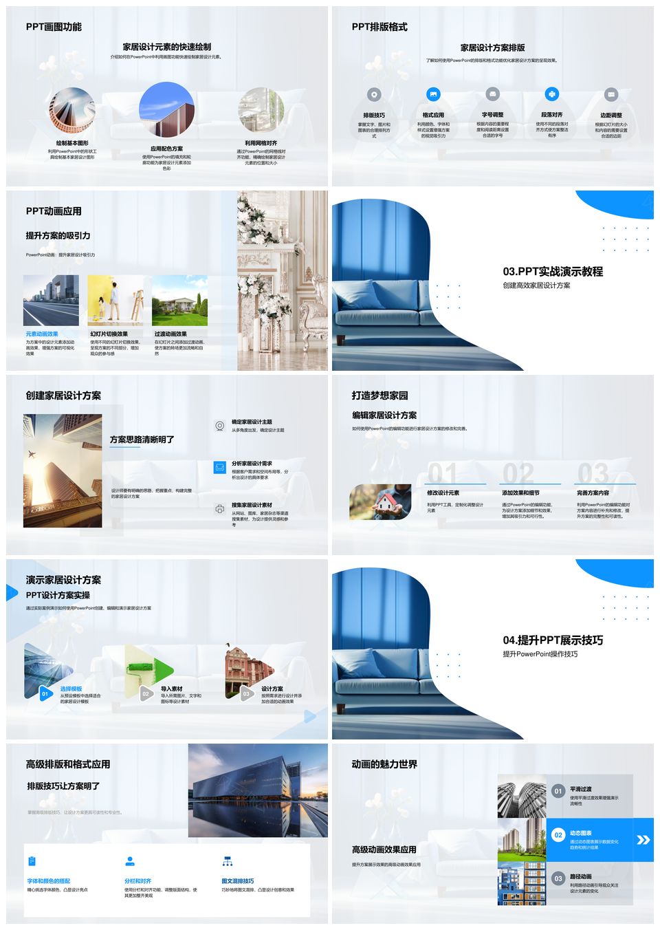 风云办公提供的家居设计PPT高效排版动画方案技巧,下载格式为pptx,一共23页,作品中文字及图均可以修改和编辑,图片更改请在作品中右键图片并更换,文字修改请直接点击文字进行修改。