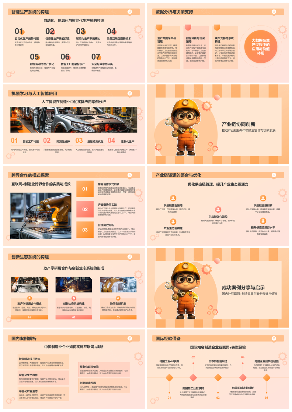 这是一张制造业智能化数据驱动质效协同创新激发活力PPT模板,包含制造业、智能化、数据驱动、质效、协同、创新、激发、活力等主题内容,也可用作制造业智能化数据驱动质效、智能化数据驱动质效协同、数据驱动质效协同创新、驱动质效协同创新激发、质效协同创新激发活力、制造业智能化数据驱动、智能化数据驱动质效、数据驱动质效协同、驱动质效协同创新、质效协同创新激发、协同创新激发活力、制造业智能化数据、智能化数据驱动、数据驱动质效、质效协同等PPT场景使用。 风云办公提供的制造业智能化数据驱动质效协同创新激发活力PPT模板,下载格式为pptx,一共20页,作品中文字及图均可以修改和编辑,图片更改请在作品中右键图片并更换,文字修改请直接点击文字进行修改。