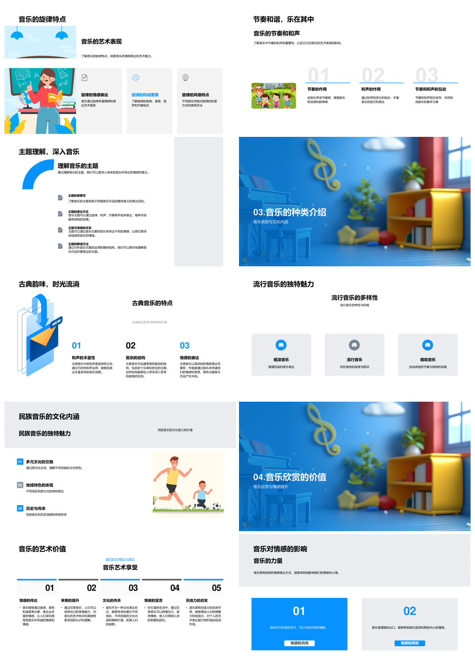 2025音乐基础教学基本概念种类与古典特点PPT模板推荐