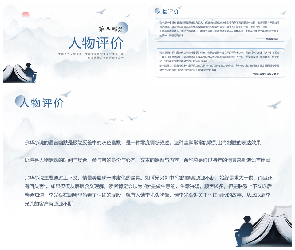 2025蓝色简约余华作家生平作品介绍PPT模板推荐