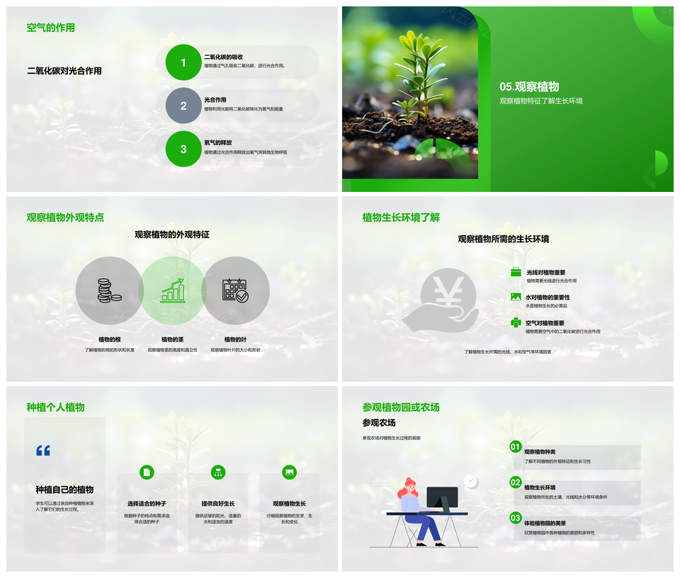 植物学家与小学生探根茎叶生长光水奥秘PPT模板推荐