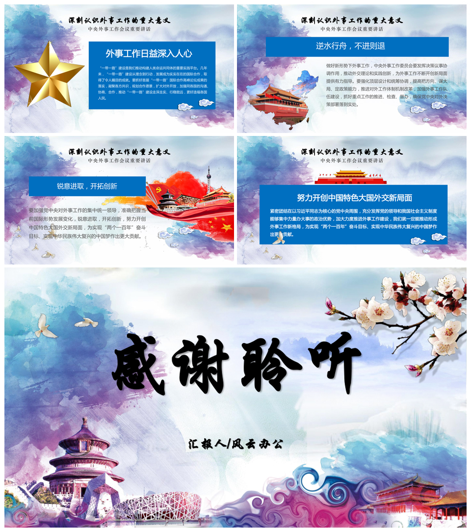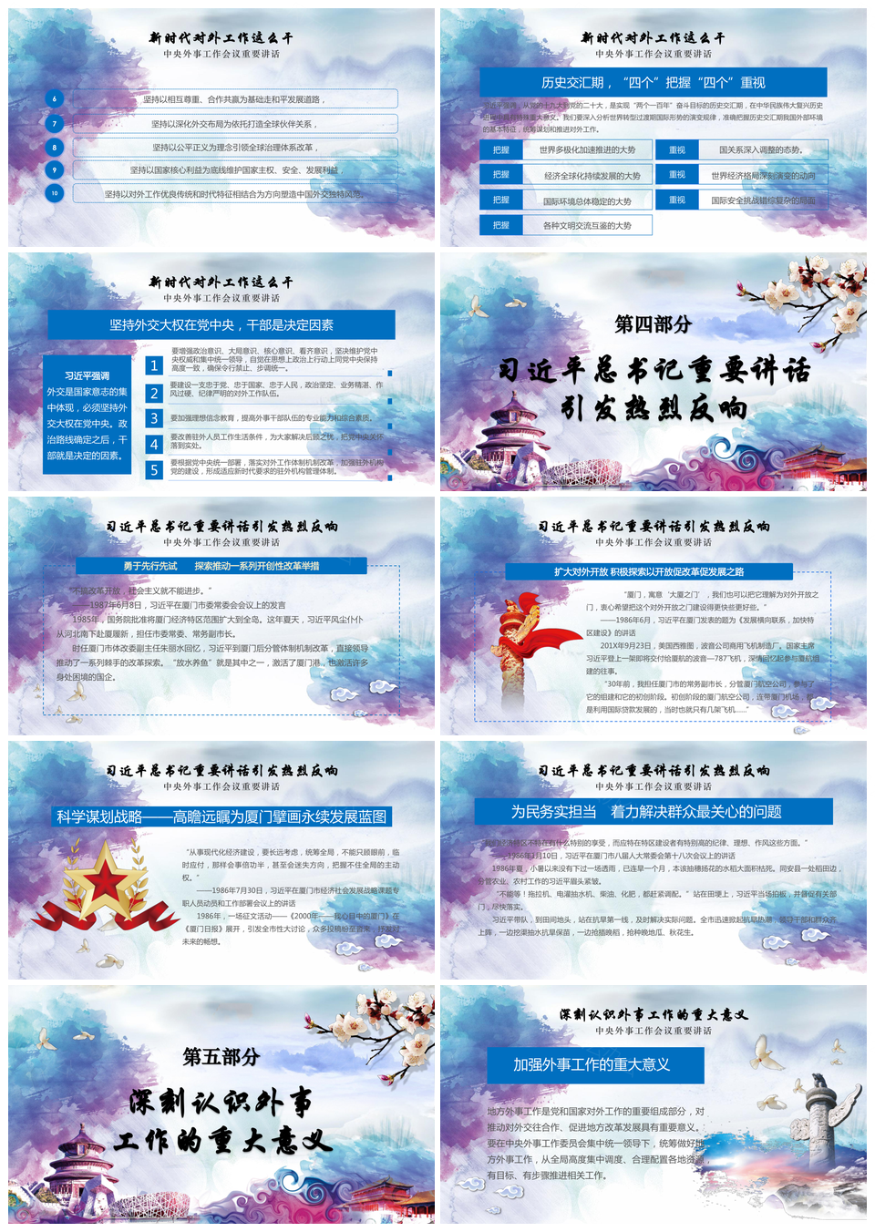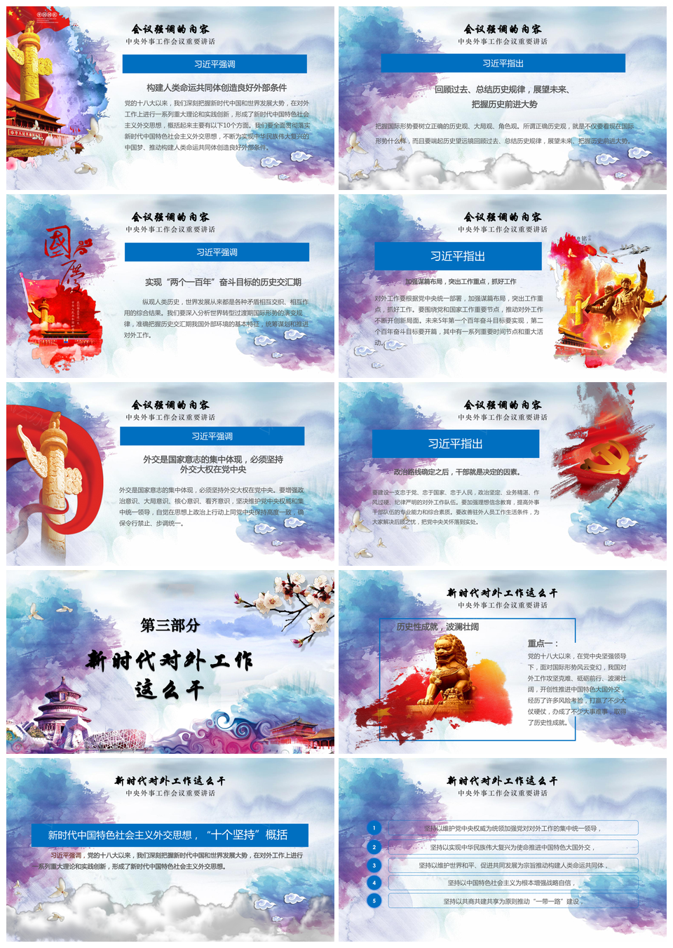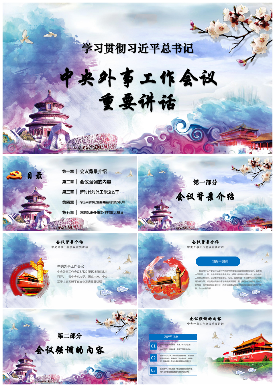 这是一张中央外事工作会议重要讲话PPT模板,包含中央、外事工作、会议、重要讲话等主题内容,也可用作中央、外事、工作、会议、重要、讲话 中央外事工作会议、外事工作会议重要讲话、工作会议重要讲话、中央外事工作、外事工作会议、会议重要讲话、中央外事、外事工作、工作会议、重要讲话等PPT场景使用。 风云办公提供的中央外事工作会议重要讲话PPT模板,下载格式为pptx,一共32页,作品中文字及图均可以修改和编辑,图片更改请在作品中右键图片并更换,文字修改请直接点击文字进行修改。