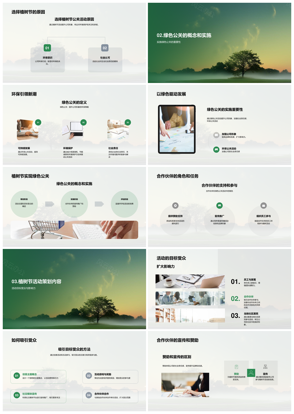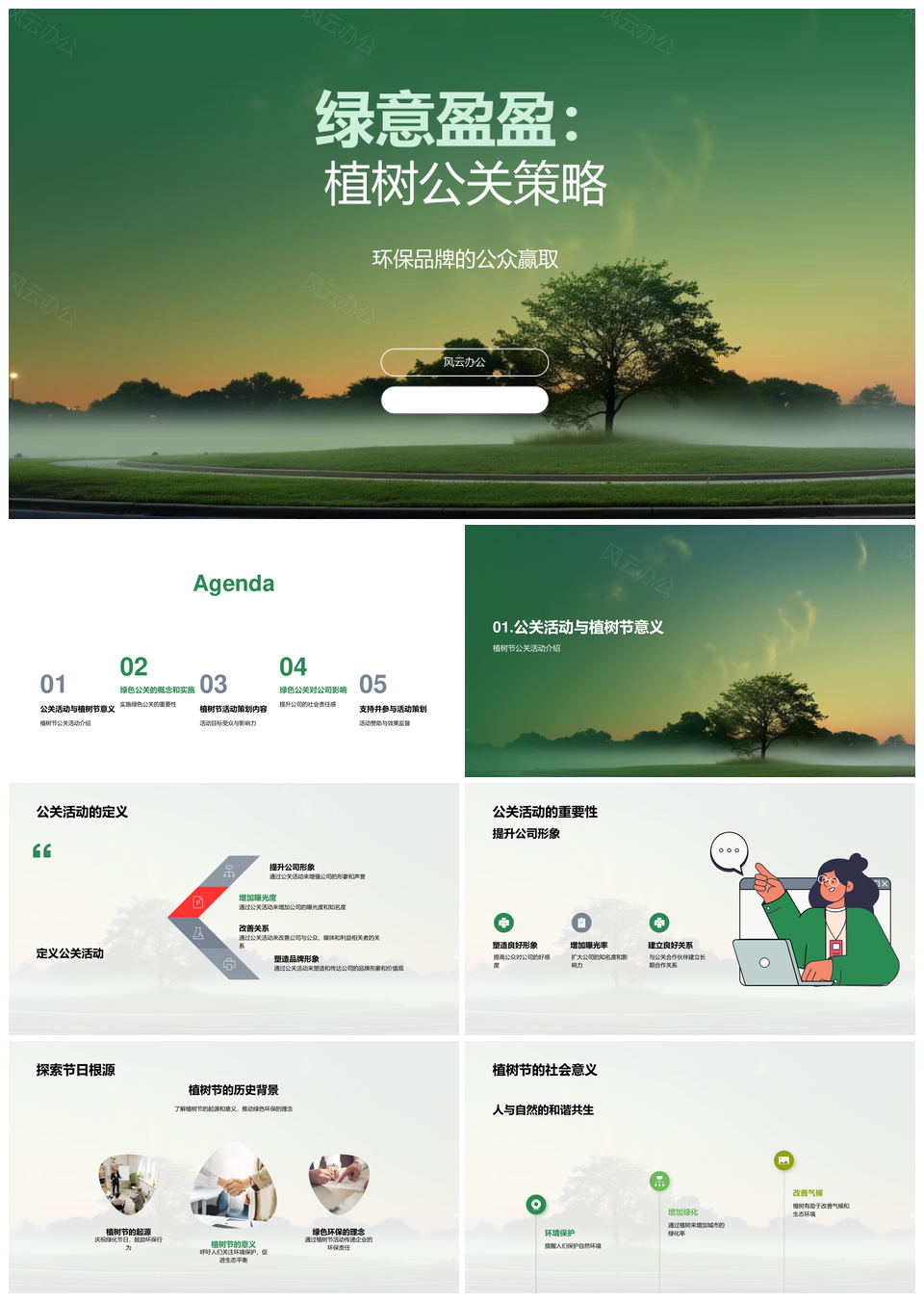 绿意盈盈植树节绿色公关活动树品牌社会责任PPT模板