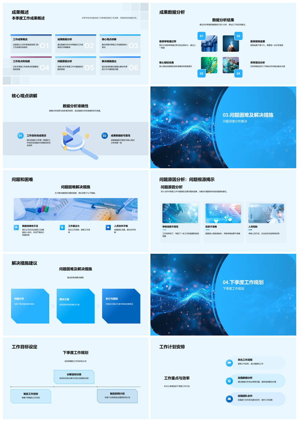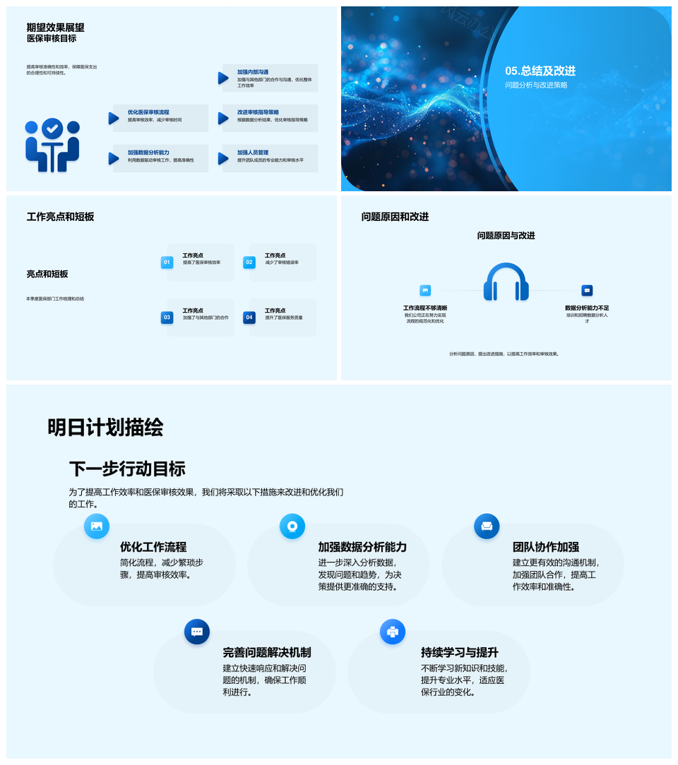 医保部门季度审核提效总结规划析亮点补短板PPT模板推荐