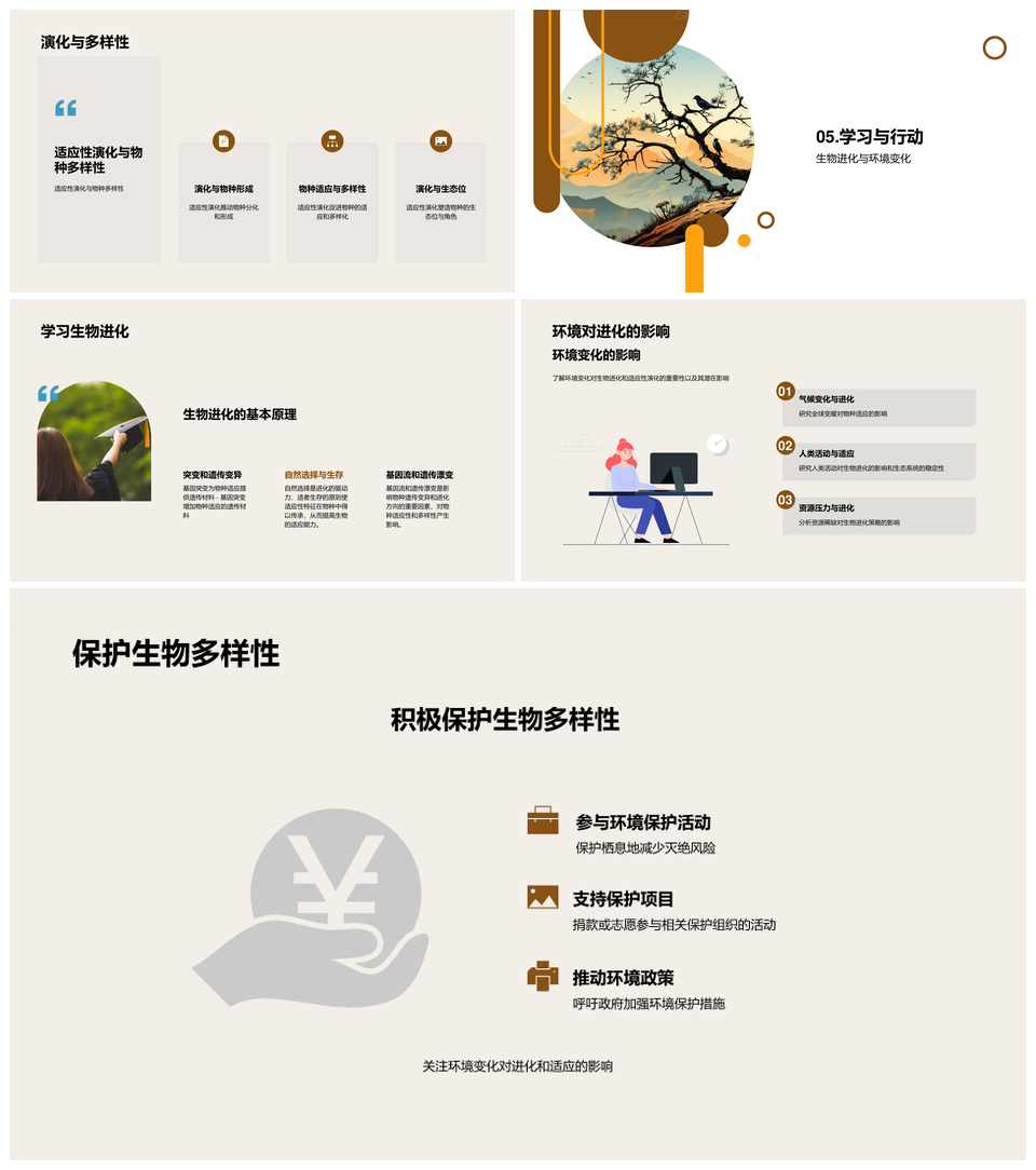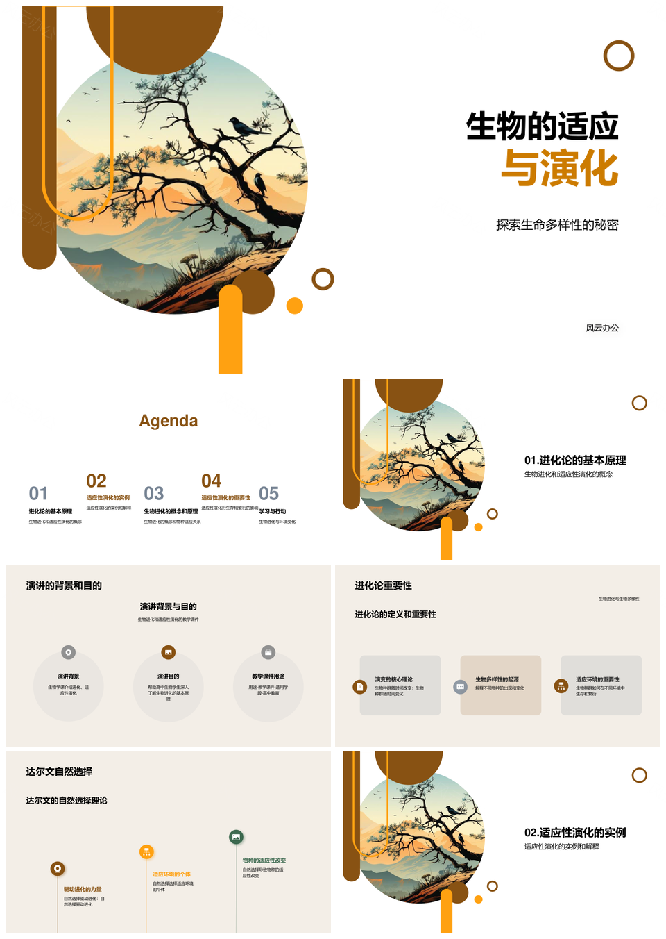 风云办公提供的达尔文自然选择论与生物适应演化实例PPT模板,下载格式为pptx,一共23页,作品中文字及图均可以修改和编辑,图片更改请在作品中右键图片并更换,文字修改请直接点击文字进行修改。