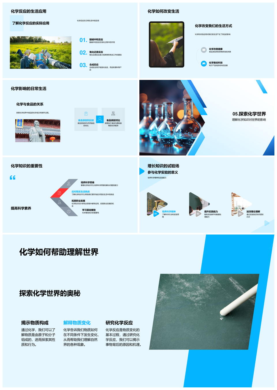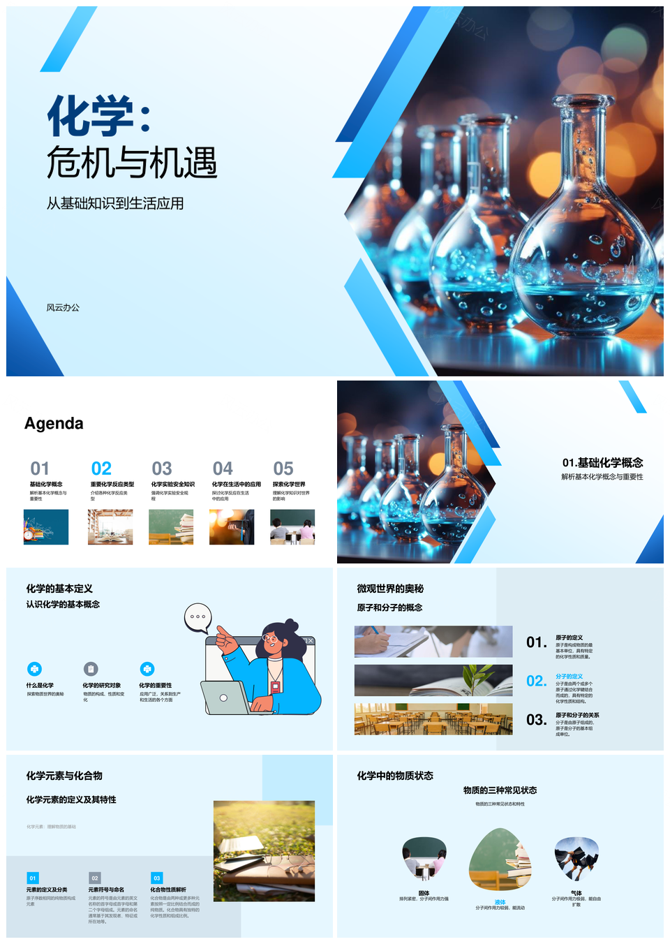 风云办公提供的化学原子分子反应与生活应用探秘PPT模板,下载格式为pptx,一共25页,作品中文字及图均可以修改和编辑,图片更改请在作品中右键图片并更换,文字修改请直接点击文字进行修改。