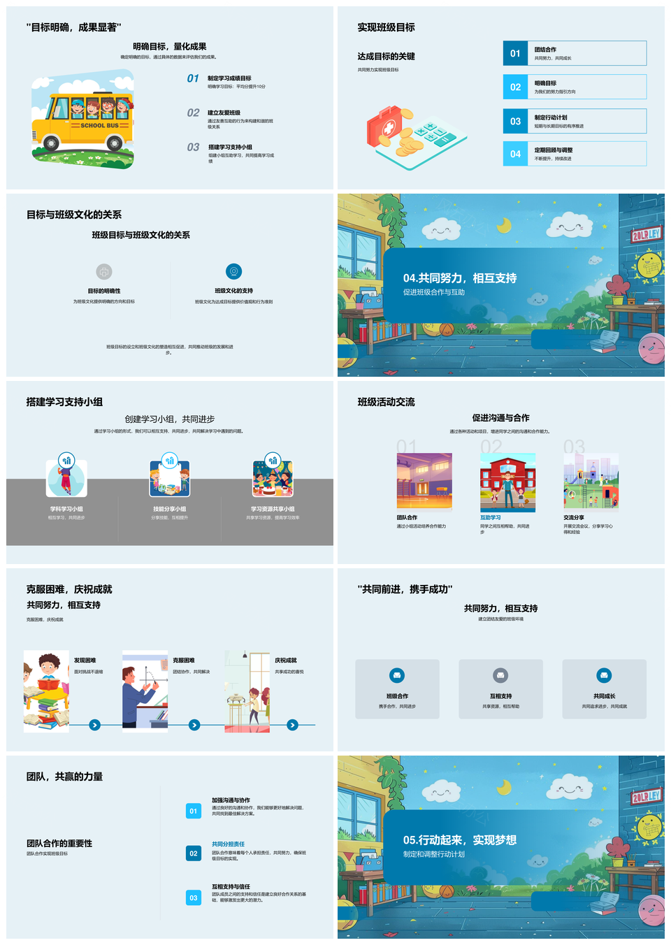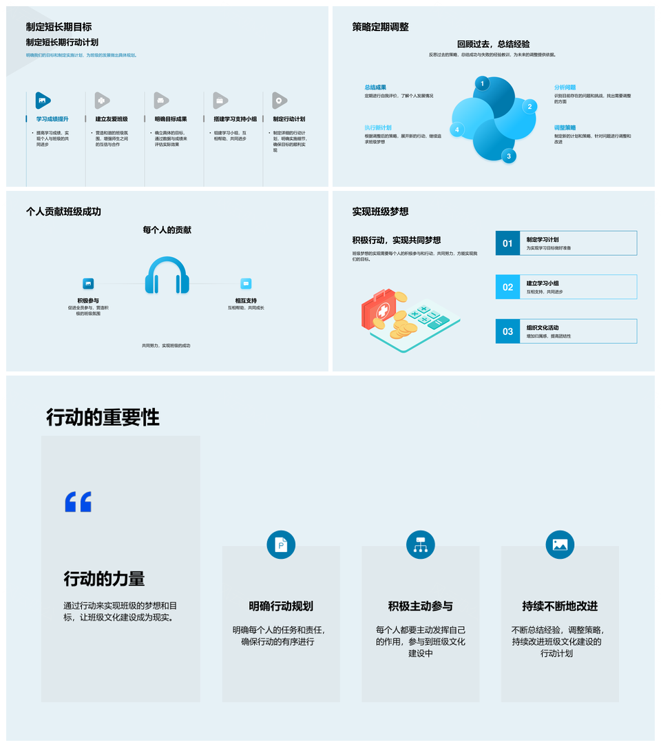 这是一张班级文化建设目标凝聚团队教育学习小组PPT模板,包含班级、文化建设、目标、凝聚、团队、教育、学习小组等主题内容,也可用作班级文化建设目标、建设目标凝聚团队、班级文化凝聚团队、教育学习小组建设、团队教育学习小组、班级教育学习小组、文化建设教育学习、目标凝聚教育学习、建设目标凝聚、班级文化建设、凝聚团队教育、教育学习小组、班级文化、文化建设、建设目标等PPT场景使用。 风云办公提供的班级文化建设目标凝聚团队教育学习小组PPT模板,下载格式为pptx,一共33页,作品中文字及图均可以修改和编辑,图片更改请在作品中右键图片并更换,文字修改请直接点击文字进行修改。