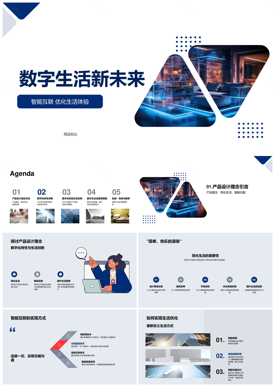 风云办公提供的智能互联科技优化数字生活体验PPT模板,下载格式为pptx,一共28页,作品中文字及图均可以修改和编辑,图片更改请在作品中右键图片并更换,文字修改请直接点击文字进行修改。