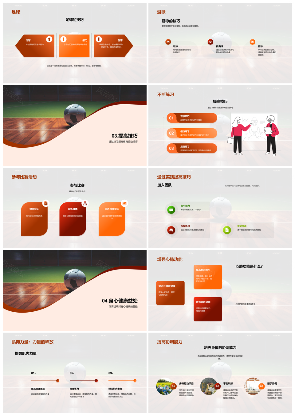 小学生家长适合足球篮球游泳田径运动启蒙PPT模板