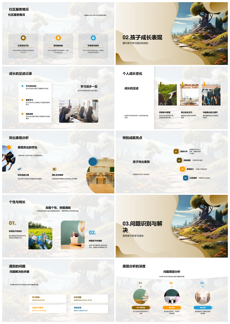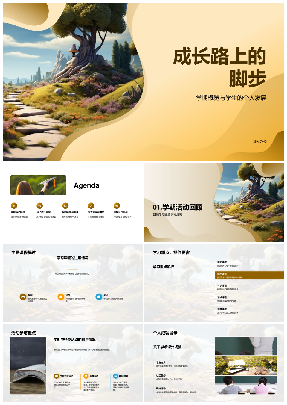 风云办公提供的学期成长足迹学习实践特长解疑PPT模板,下载格式为pptx,一共33页,作品中文字及图均可以修改和编辑,图片更改请在作品中右键图片并更换,文字修改请直接点击文字进行修改。