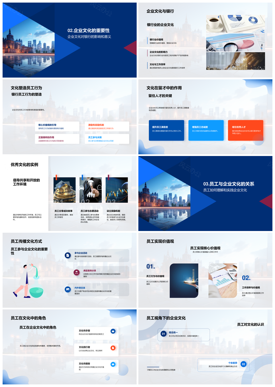 这是一张银行历史文化使命愿景核心员工参与大楼力量PPT模板,包含银行、历史、文化、使命、愿景、核心员工、参与、大楼、力量等主题内容,也可用作银行历史文化使命愿景、历史文化使命愿景核心、使命愿景核心员工参与、愿景核心员工参与大楼、核心员工参与大楼力量、银行使命愿景核心员工、历史使命愿景核心力量、文化使命核心参与力量、银行核心员工参与力量、历史文化员工大楼力量、使命愿景参与大楼力量、历史文化核心员工参与、银行核心参与大楼力量、使命愿景核心参与力量、历史文化使命核心力量等PPT场景使用。 风云办公提供的银行历史文化使命愿景核心员工参与大楼力量PPT模板,下载格式为pptx,一共28页,作品中文字及图均可以修改和编辑,图片更改请在作品中右键图片并更换,文字修改请直接点击文字进行修改。