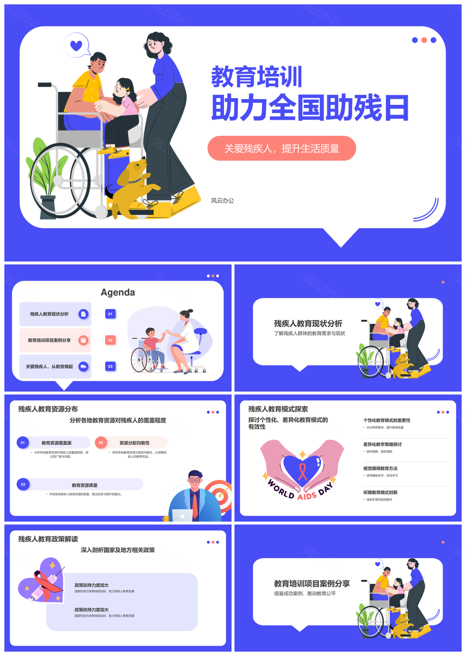 全国助残日关爱残疾人教育融合助残服务权益PPT模板推荐
