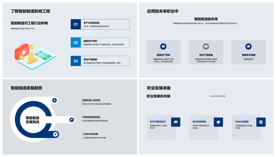 这是一张智能制造技术工程应用自动化革命PPT模板,包含智能制造技术、工程应用、自动化、革命等主题内容,也可用作智能制造技术工程、制造技术工程应用、技术工程应用自动化、工程应用自动化革命、智能制造技术、制造技术工程、技术工程应用、工程应用自动化、应用自动化革命、智能制造应用、制造应用自动化、技术应用自动化、工程自动化革命、智能应用自动化、智能制造等PPT场景使用。