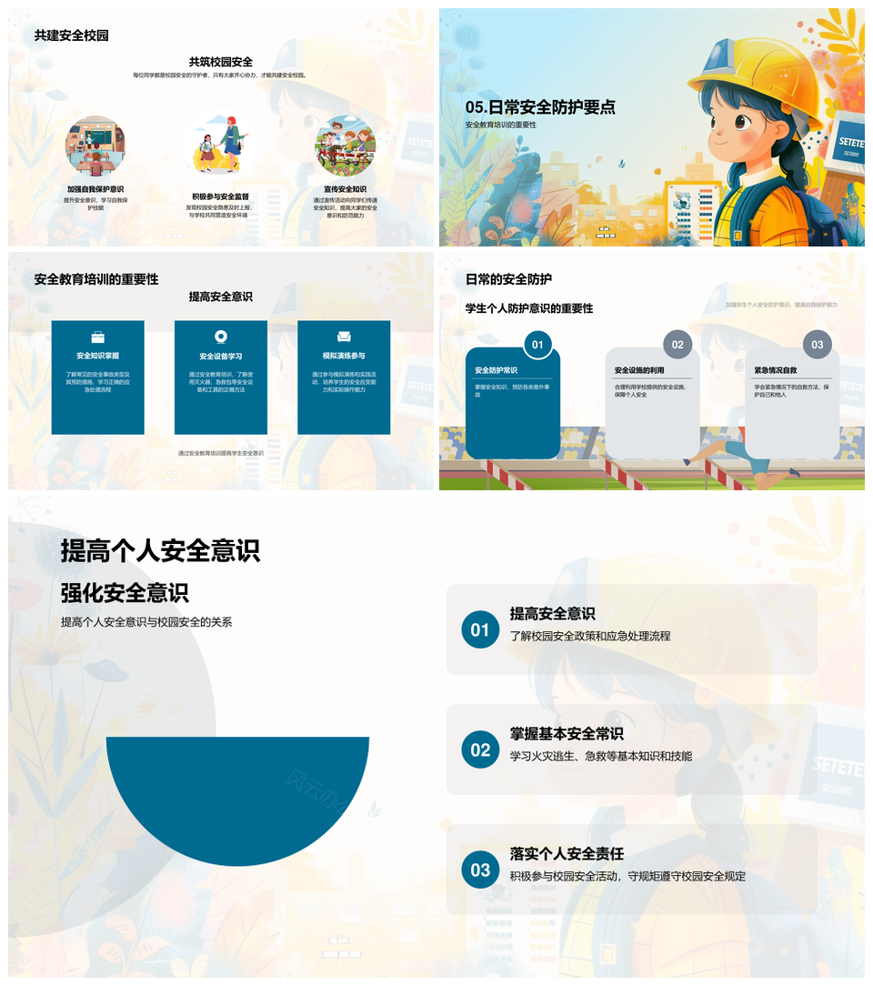 校园安全教育强化应急能力与头盔防护意识PPT模板