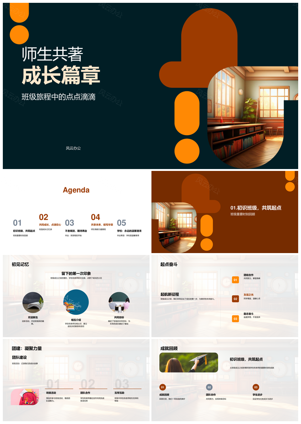 风云办公提供的师生共著班级旅程毕业相册成长PPT模板,下载格式为pptx,一共33页,作品中文字及图均可以修改和编辑,图片更改请在作品中右键图片并更换,文字修改请直接点击文字进行修改。