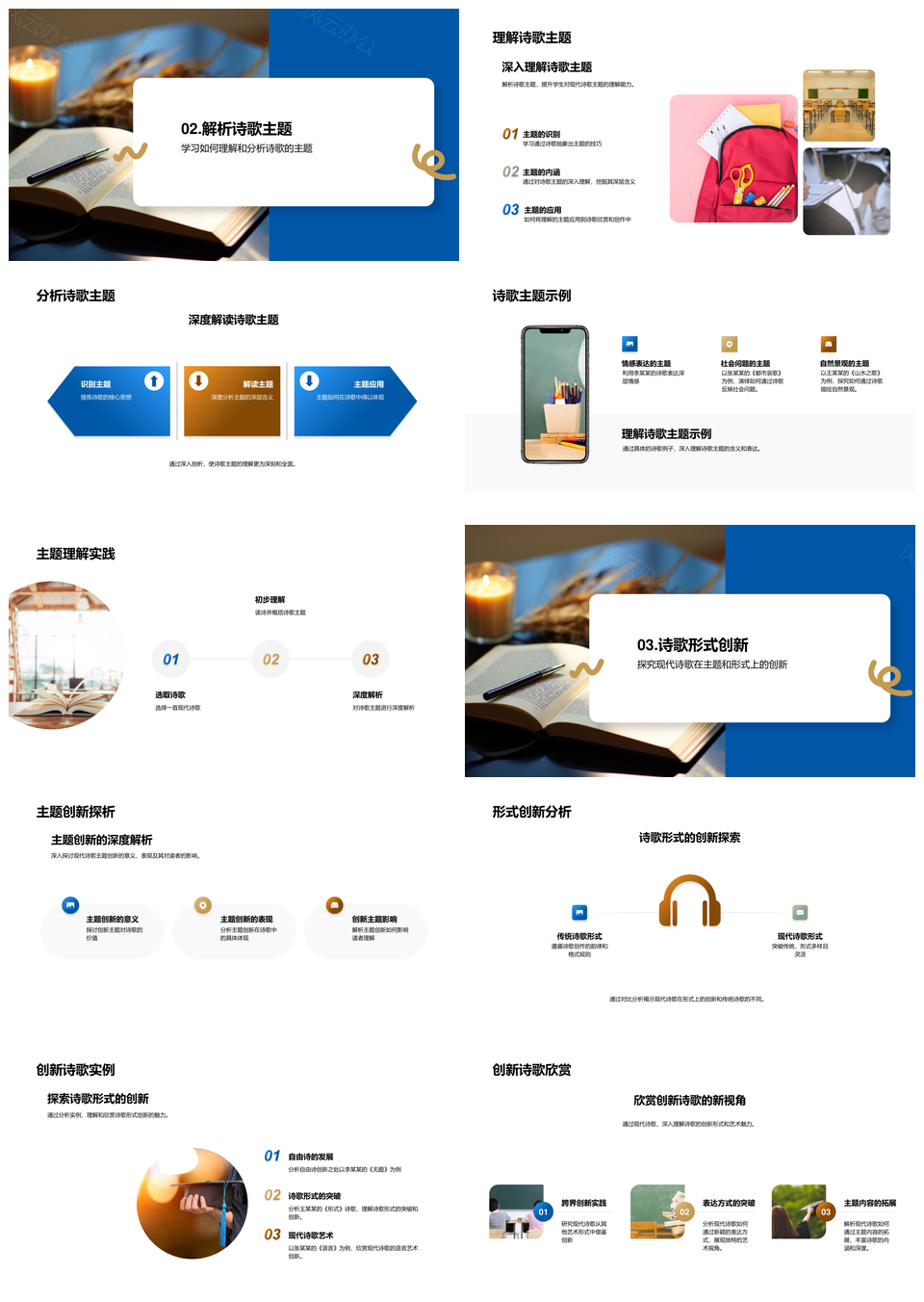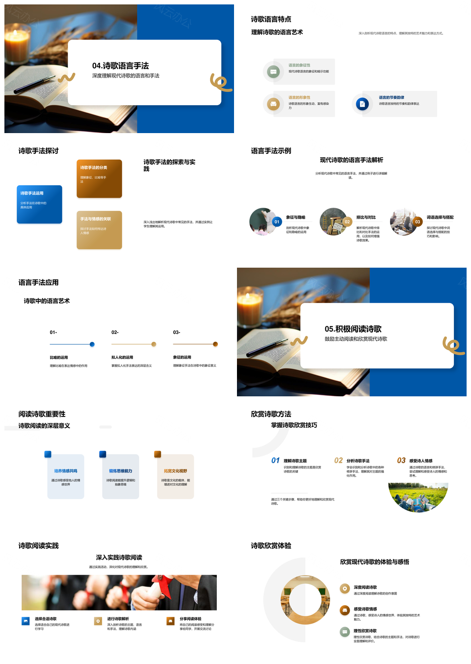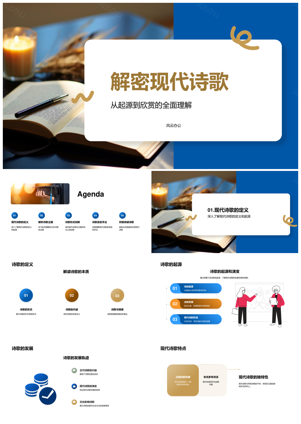 风云办公提供的现代诗歌起源发展形式语言与赏析解析PPT模板,下载格式为pptx,一共28页,作品中文字及图均可以修改和编辑,图片更改请在作品中右键图片并更换,文字修改请直接点击文字进行修改。