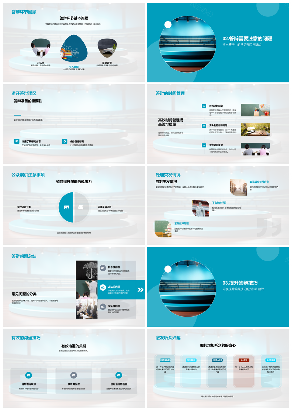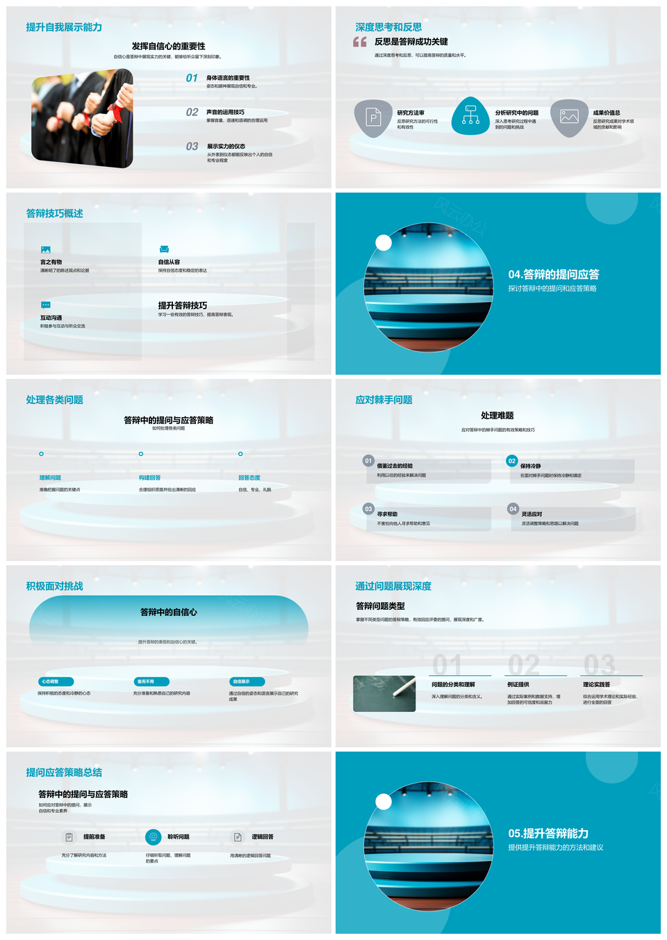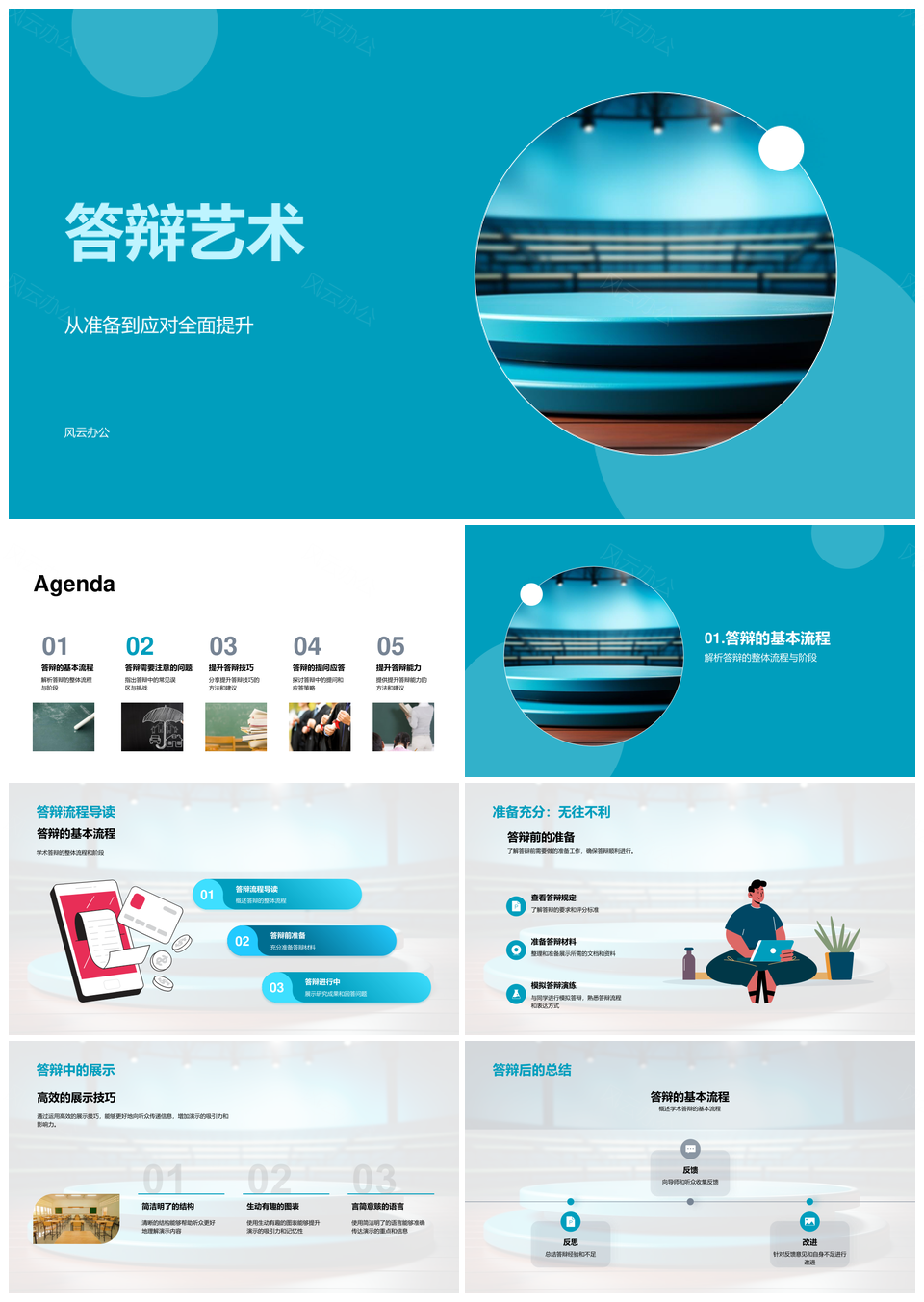 风云办公提供的答辩技巧流程心理调节与沟通策略PPT模板,下载格式为pptx,一共33页,作品中文字及图均可以修改和编辑,图片更改请在作品中右键图片并更换,文字修改请直接点击文字进行修改。