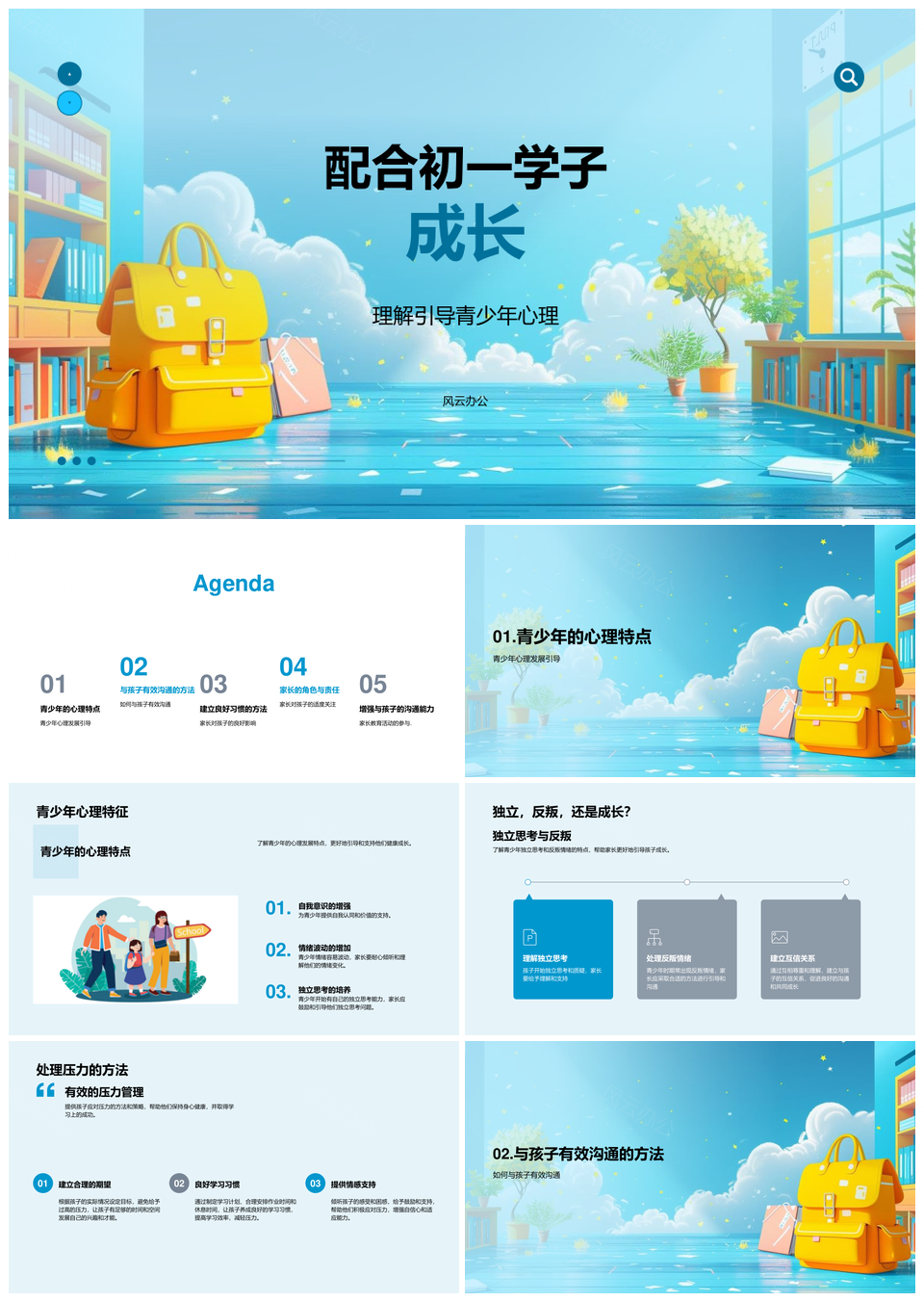 初一学生心理发展独立反叛压力沟通成长PPT模板推荐