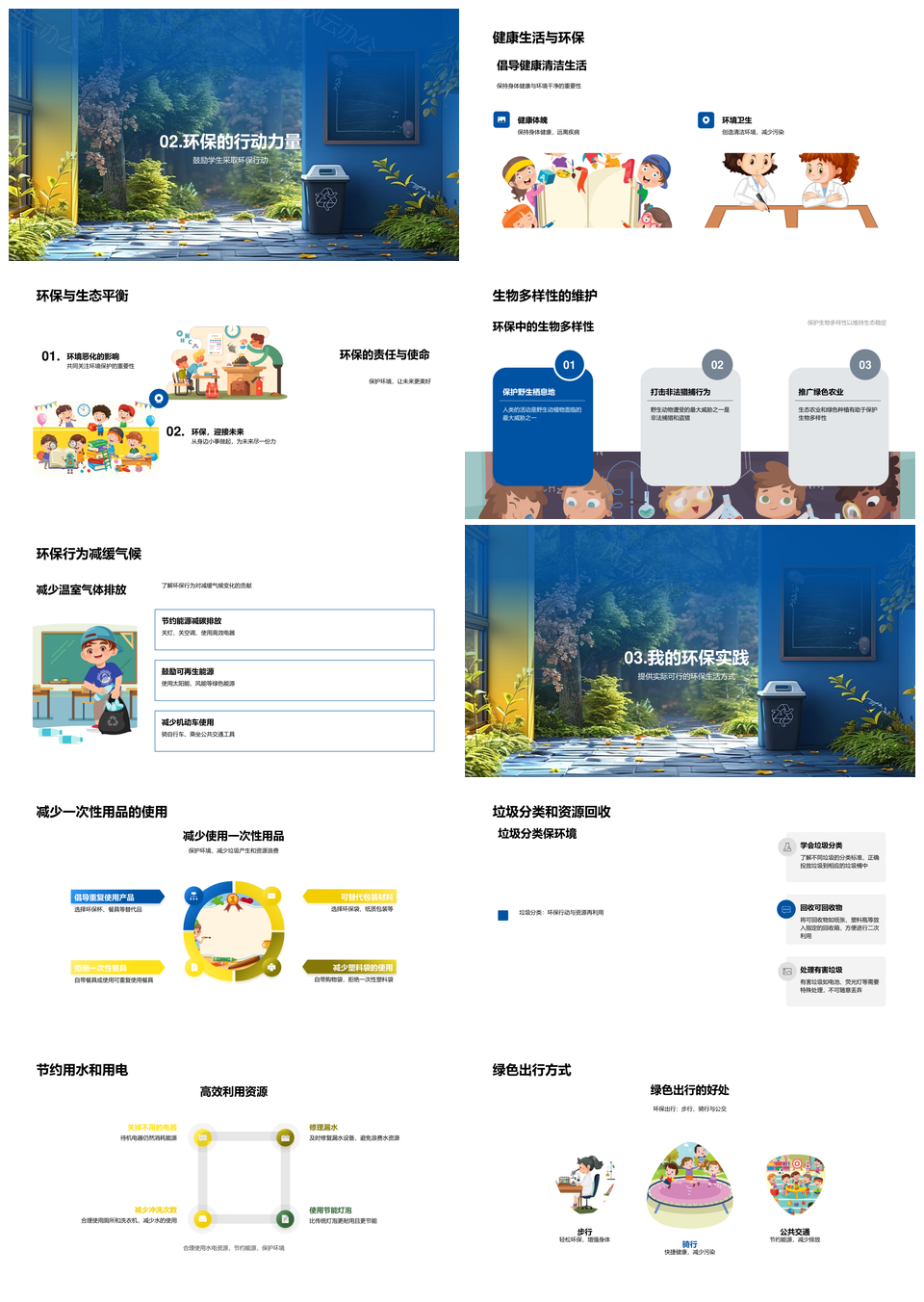 2025环保行动绿色出行垃圾分类节能减碳守护地球PPT模板