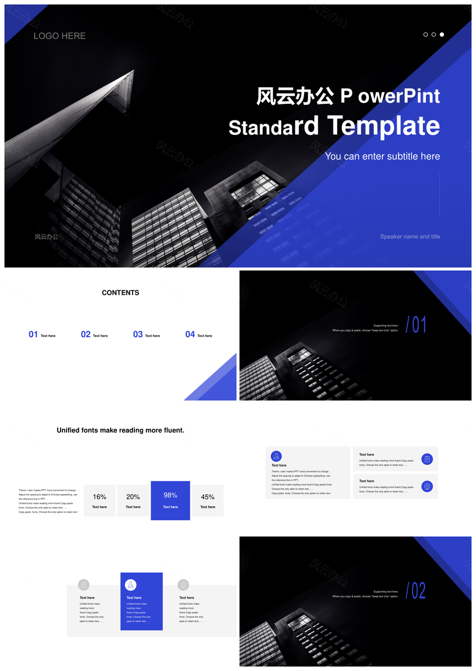蓝色商务建筑深色简约创意工作汇报总结PPT模板推荐