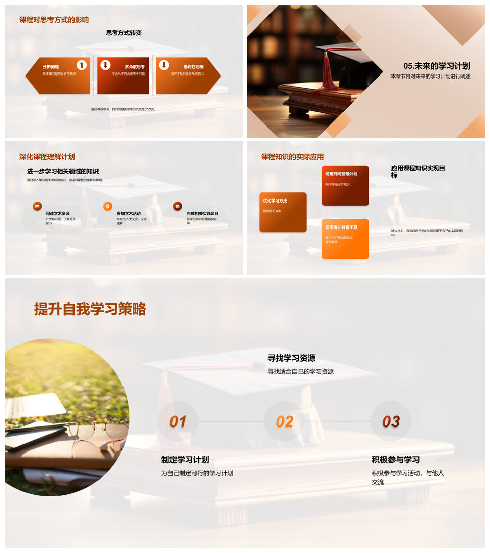 风云办公提供的课程学习知识影响与未来计划PPT模板,下载格式为pptx,一共23页,作品中文字及图均可以修改和编辑,图片更改请在作品中右键图片并更换,文字修改请直接点击文字进行修改。
