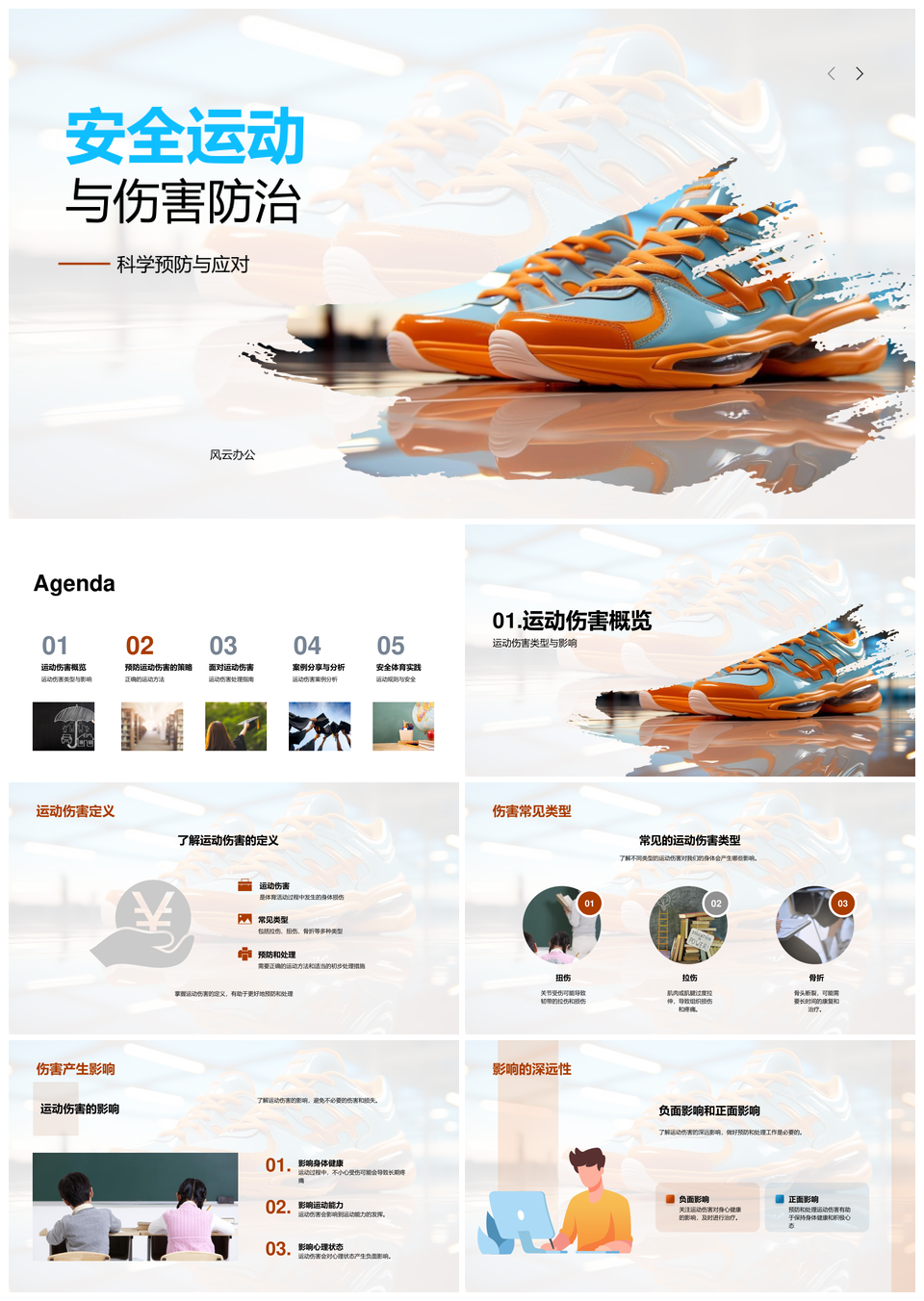 风云办公提供的安全运动伤害科学预防与应对方法PPT模板,下载格式为pptx,一共28页,作品中文字及图均可以修改和编辑,图片更改请在作品中右键图片并更换,文字修改请直接点击文字进行修改。