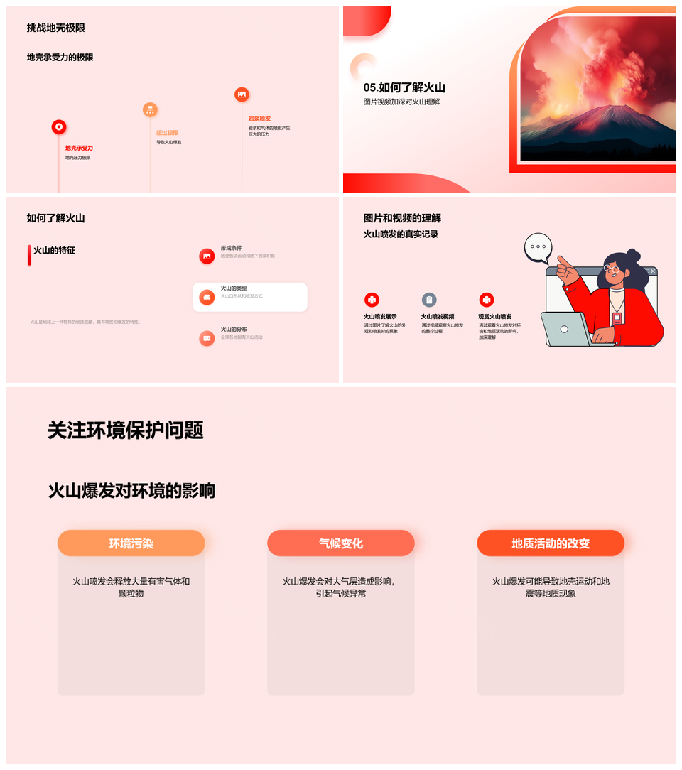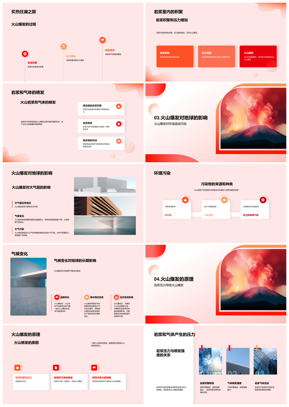 风云办公提供的火山爆发喷发原理过程岩浆压力作用PPT模板,下载格式为pptx,一共23页,作品中文字及图均可以修改和编辑,图片更改请在作品中右键图片并更换,文字修改请直接点击文字进行修改。