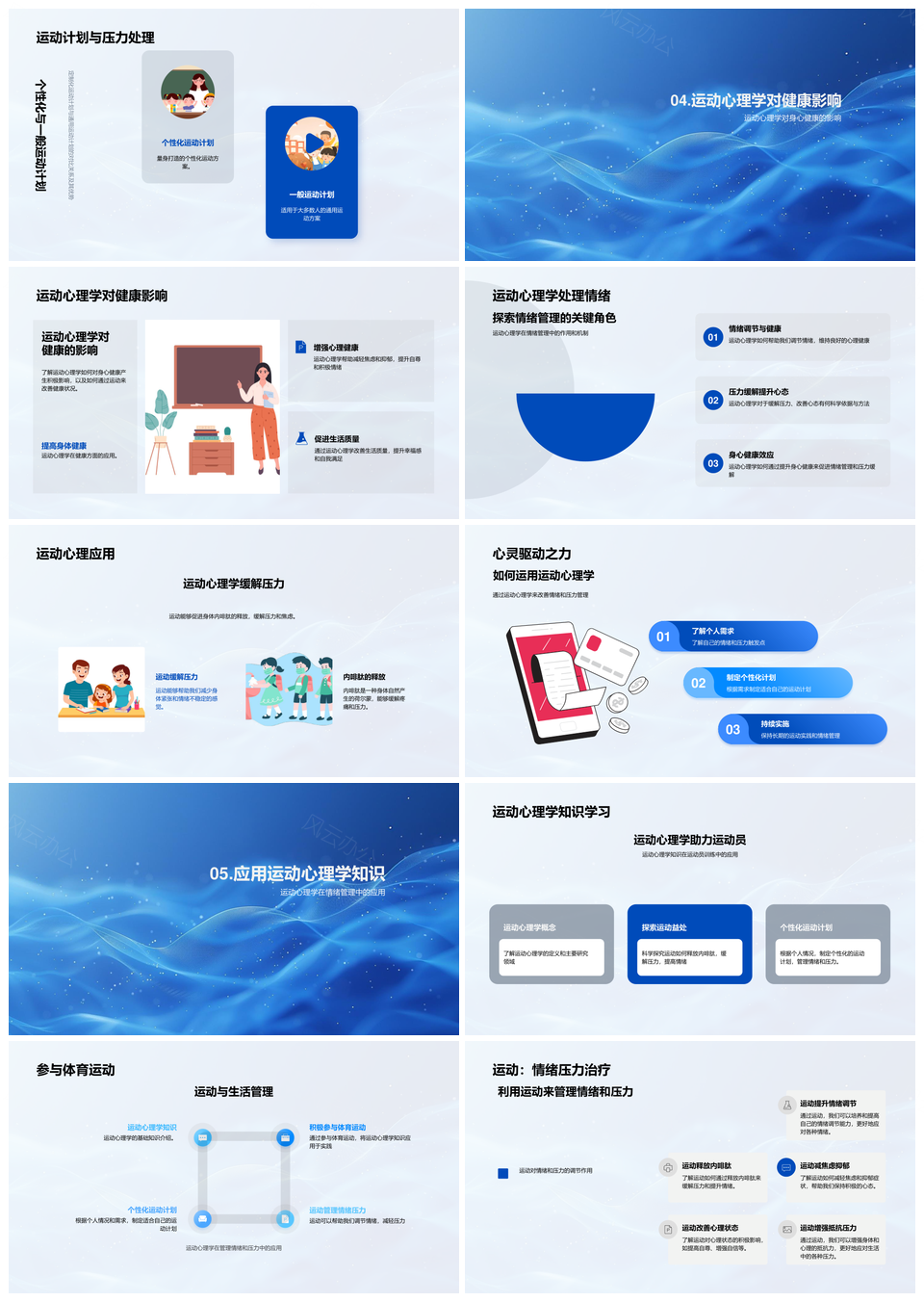这是一张运动心理学身心健康情绪压力管理运动疗法PPT模板,包含运动心理学、身心健康、情绪压力管理、运动疗法等主题内容,也可用作运动心理学身心健康情绪压力管理、运动心理学情绪压力管理运动疗法、身心健康情绪压力管理运动疗法、运动心理学身心健康运动疗法、运动心理学情绪压力管理、身心健康情绪压力管理、情绪压力管理运动疗法、运动心理学身心健康、运动心理学运动疗法、身心健康运动疗法、情绪压力管理、管理运动疗法、运动心理学管理、身心健康管理、情绪压力运动疗法等PPT场景使用。 风云办公提供的运动心理学身心健康情绪压力管理运动疗法PPT模板,下载格式为pptx,一共29页,作品中文字及图均可以修改和编辑,图片更改请在作品中右键图片并更换,文字修改请直接点击文字进行修改。