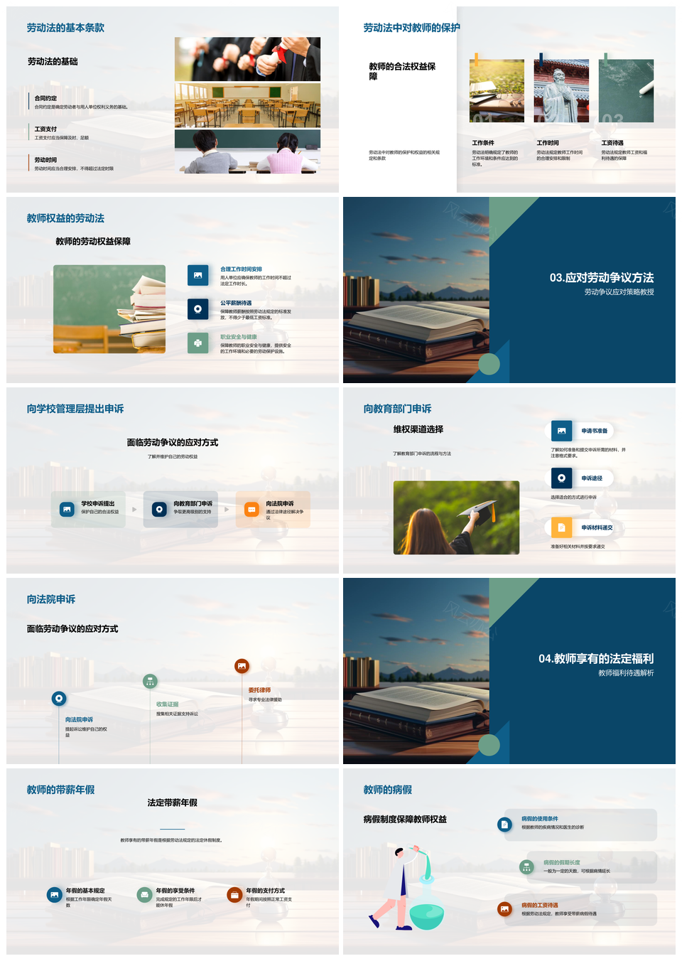 这是一张教师劳动权益与劳动法保障职责权利PPT模板,包含教师、劳动权益、劳动法、保障、职责、权利等主题内容,也可用作劳动法保障职责权利、教师劳动权益保障、劳动权益保障职责、教师劳动法保障职责、劳动保障职责权利、教师权益保障职责、劳动法保障权利、教师劳动职责权利、劳动权益职责权利、劳动法保障职责、教师劳动权益、劳动保障职责、保障职责权利、教师劳动法、劳动权益保障等PPT场景使用。