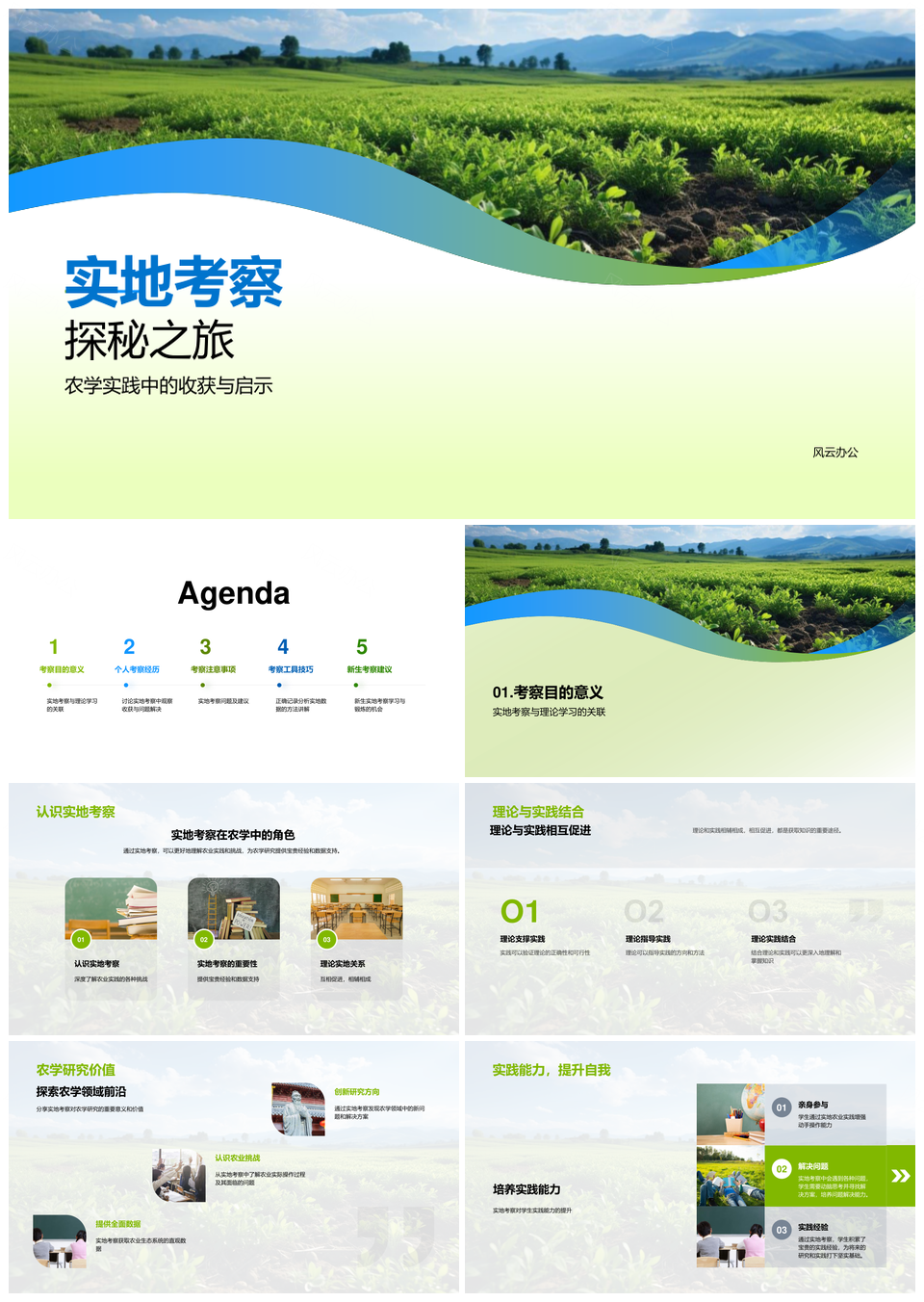 风云办公提供的农学实践理论结合实地考察研究PPT模板,下载格式为pptx,一共33页,作品中文字及图均可以修改和编辑,图片更改请在作品中右键图片并更换,文字修改请直接点击文字进行修改。