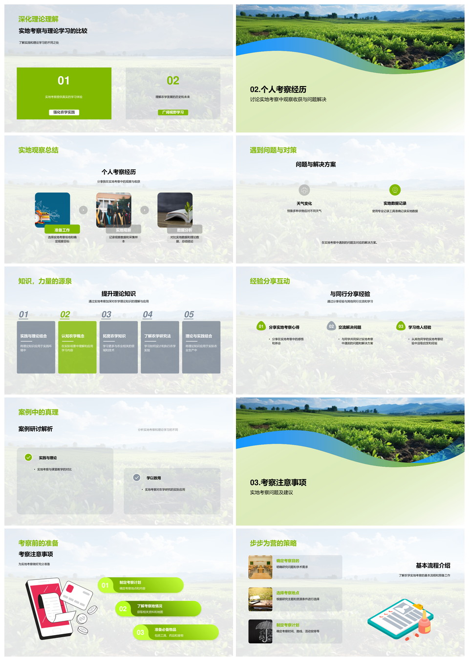 这是一张农学实践理论结合实地考察研究PPT模板,包含农学、实践、理论、结合、实地、考察、研究等主题内容,也可用作农学实践理论结合、实践理论结合实地、理论结合实地考察、结合实地考察研究、农学实践理论、实践理论结合、理论结合实地、结合实地考察、实地考察研究、农学实地考察、农学实践研究、农学实践、实地考察、考察研究、理论研究等PPT场景使用。