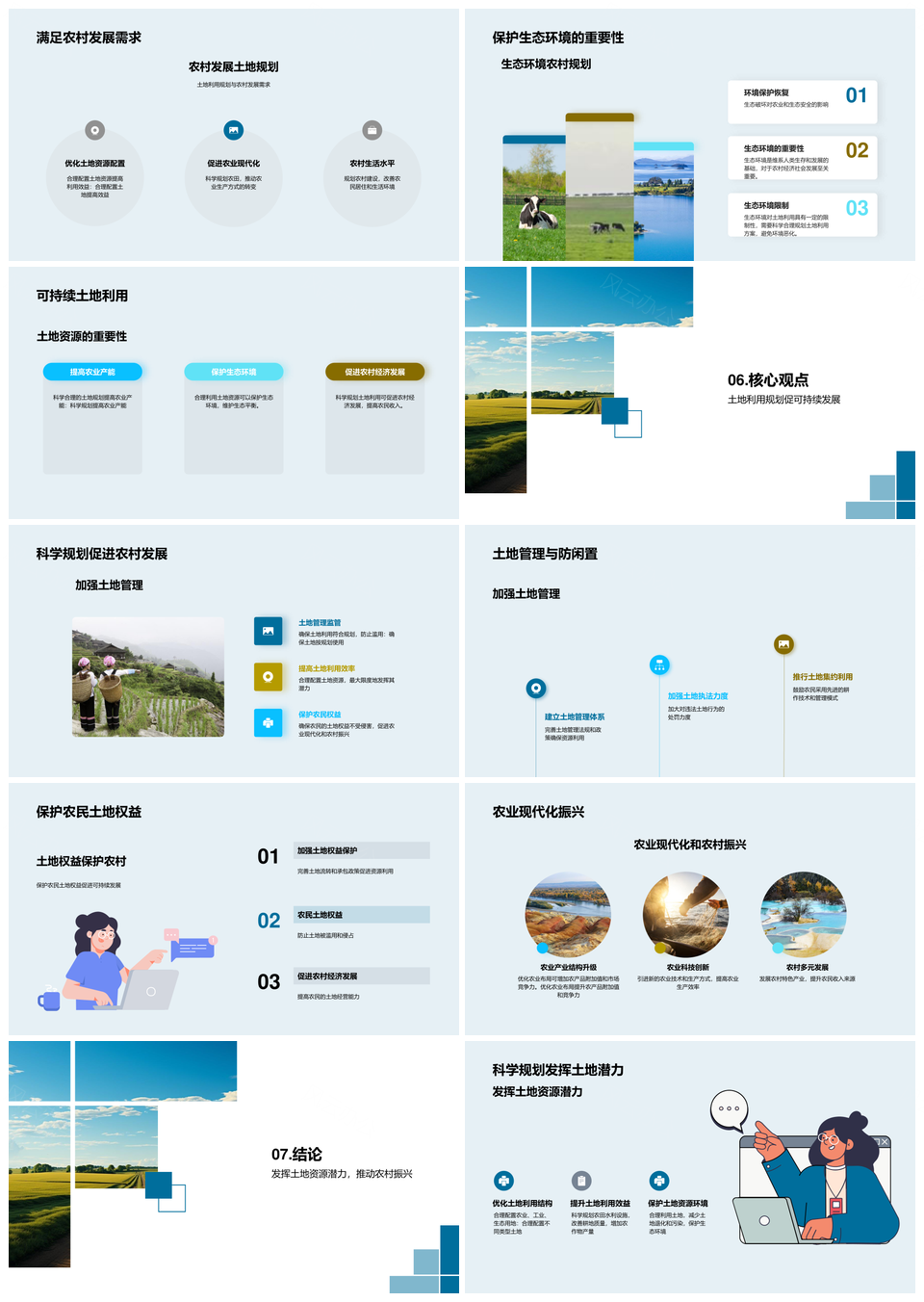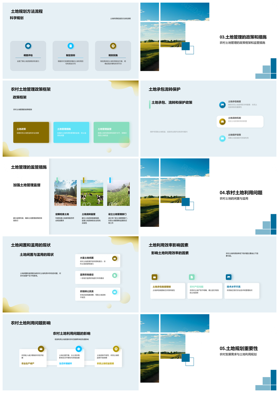这是一张农村土地规划管理资源发展村民委员会政策PPT模板,包含农村土地、规划、管理、资源、发展、村民委员会、政策等主题内容,也可用作农村土地规划管理、土地规划管理资源、规划管理资源发展、管理资源发展村民委员会、资源发展村民委员会政策、土地资源发展政策、村民委员会发展政策、农村土地资源管理、规划管理发展政策、农村发展村民委员会、农村土地、土地规划、村民委员会政策、资源发展、土地管理等PPT场景使用。 风云办公提供的农村土地规划管理资源发展村民委员会政策PPT模板,下载格式为pptx,一共30页,作品中文字及图均可以修改和编辑,图片更改请在作品中右键图片并更换,文字修改请直接点击文字进行修改。