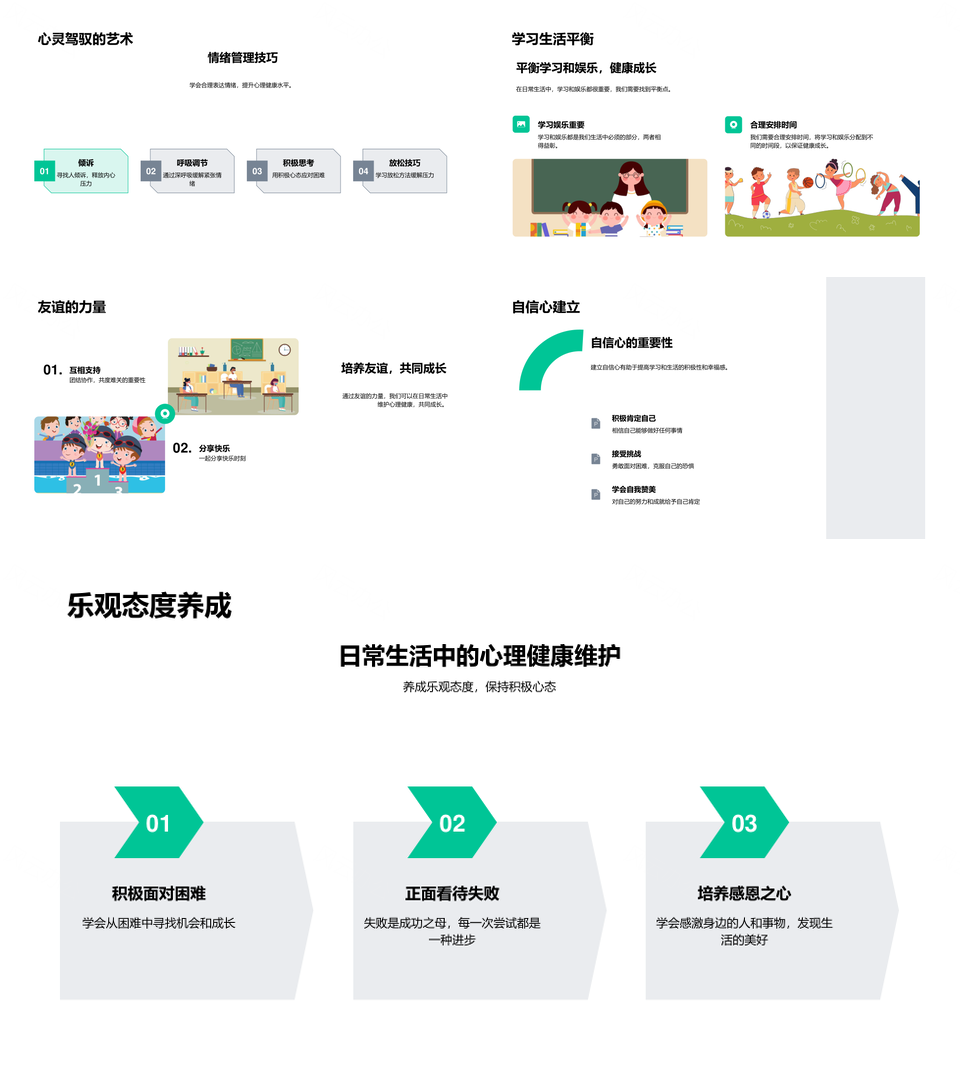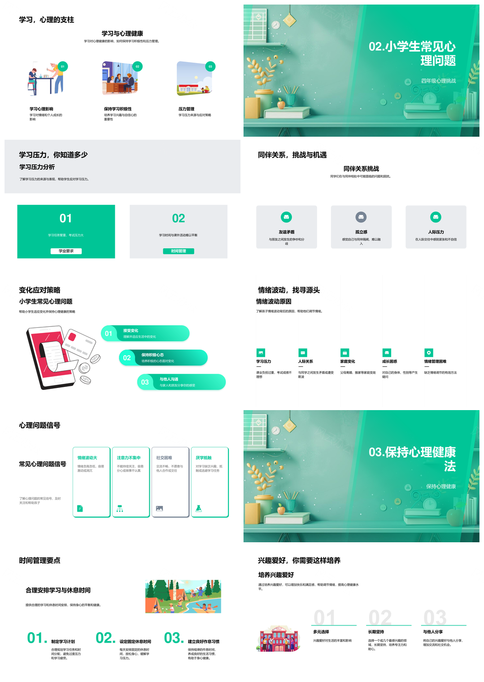 风云办公提供的小学生心理健康与学习情绪管理PPT模板,下载格式为pptx,一共33页,作品中文字及图均可以修改和编辑,图片更改请在作品中右键图片并更换,文字修改请直接点击文字进行修改。