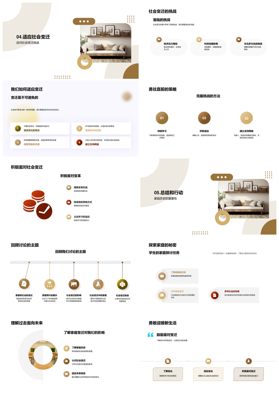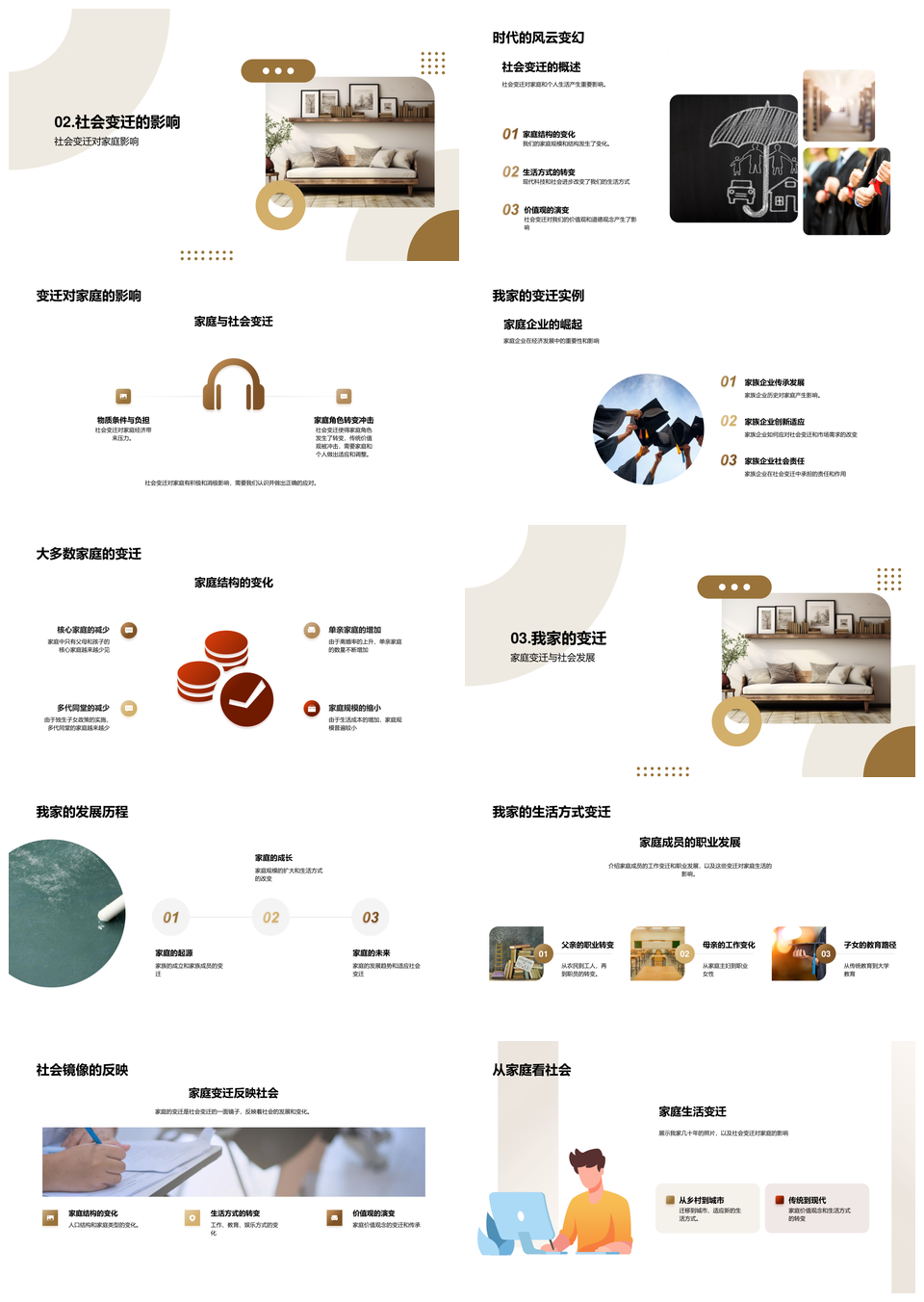 风云办公提供的家庭社会变迁师生共探复古相册教育PPT模板,下载格式为pptx,一共28页,作品中文字及图均可以修改和编辑,图片更改请在作品中右键图片并更换,文字修改请直接点击文字进行修改。