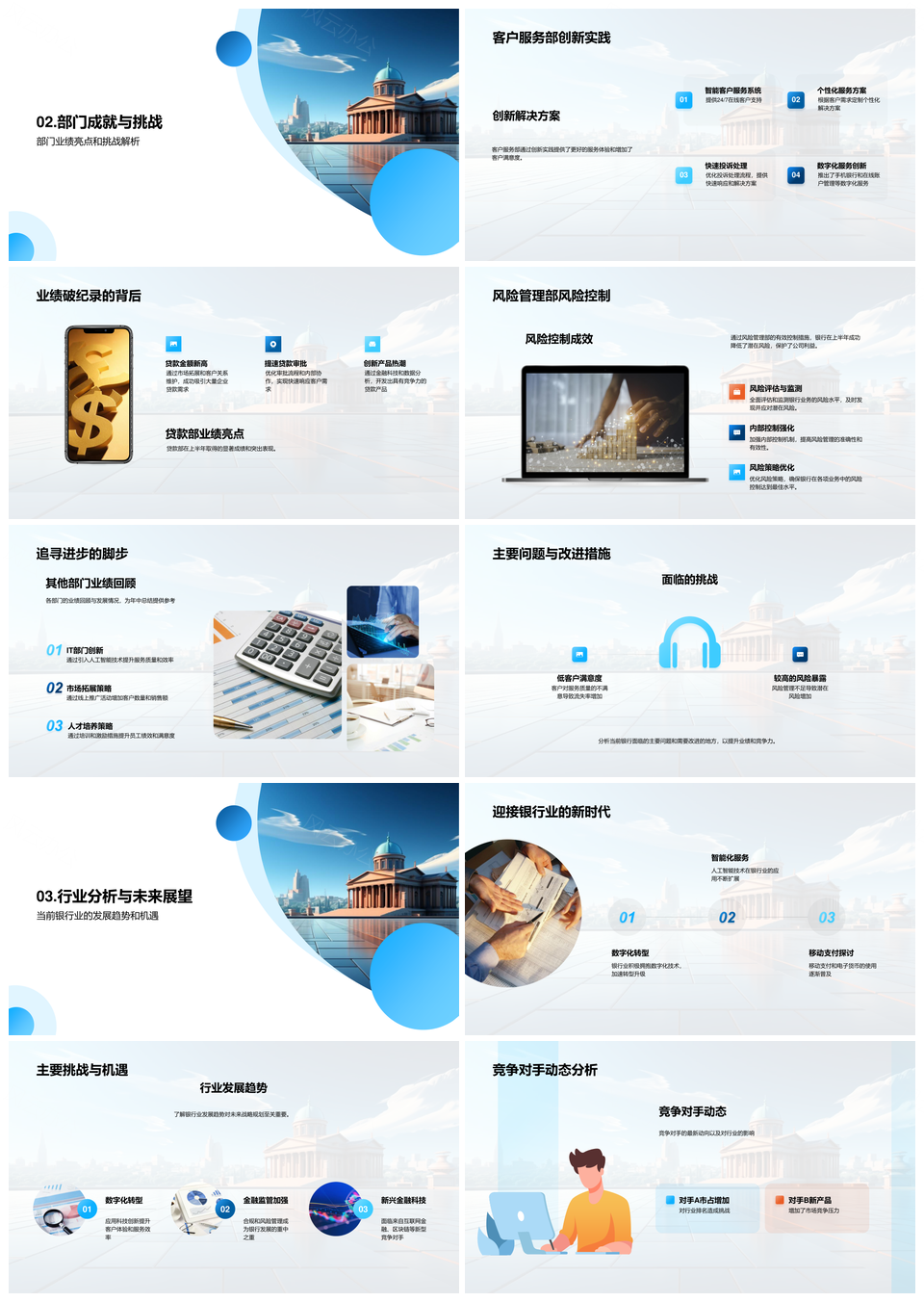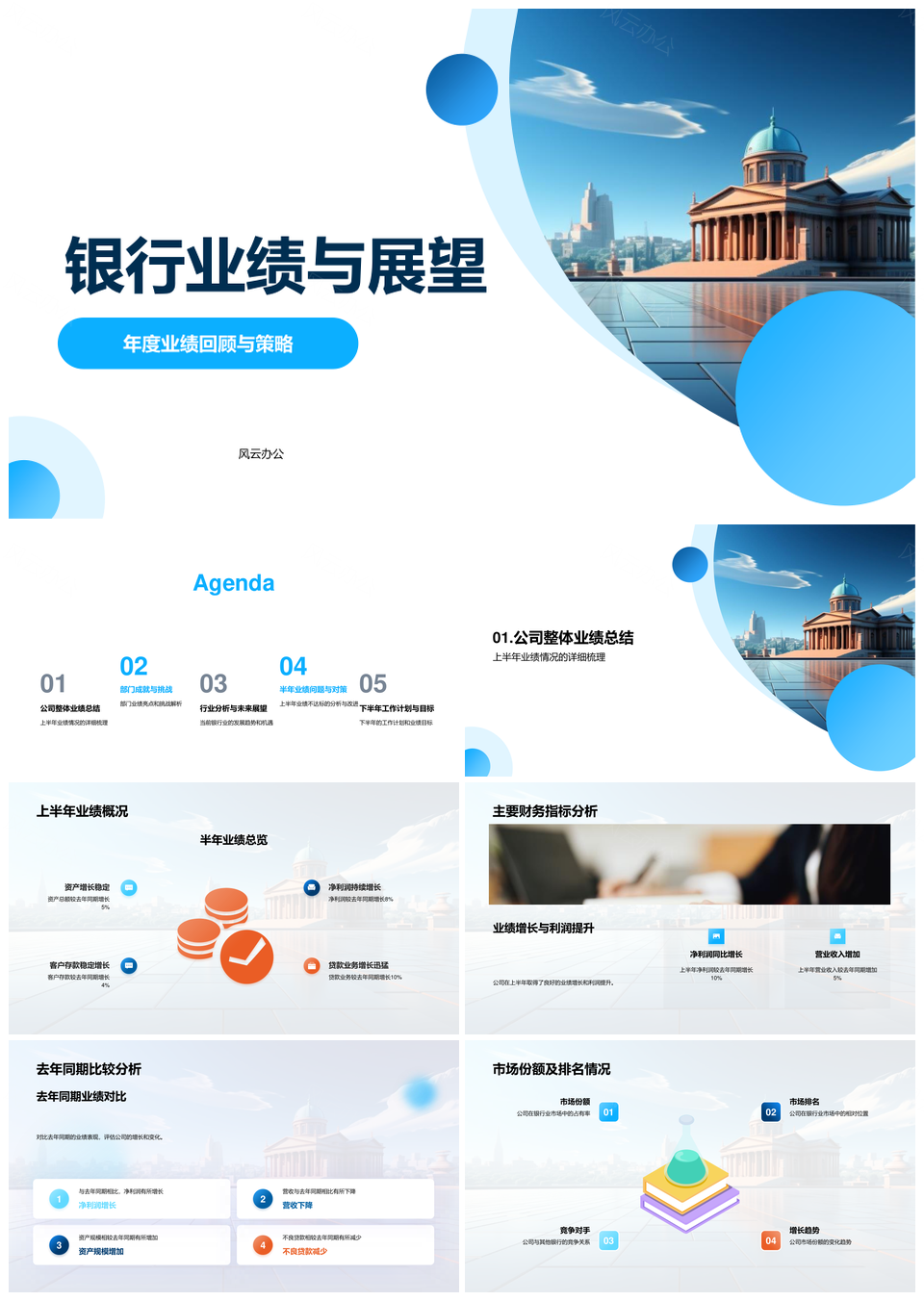 风云办公提供的银行业绩展望财务风险管理与市场动态PPT模板,下载格式为pptx,一共32页,作品中文字及图均可以修改和编辑,图片更改请在作品中右键图片并更换,文字修改请直接点击文字进行修改。