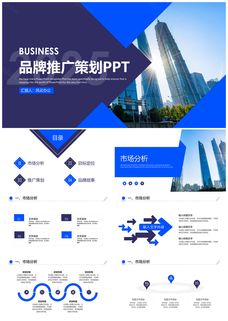 风云办公提供的2025欧美风商务品牌推广策划PPT模板,下载格式为pptx,一共22页,作品中文字及图均可以修改和编辑,图片更改请在作品中右键图片并更换,文字修改请直接点击文字进行修改。