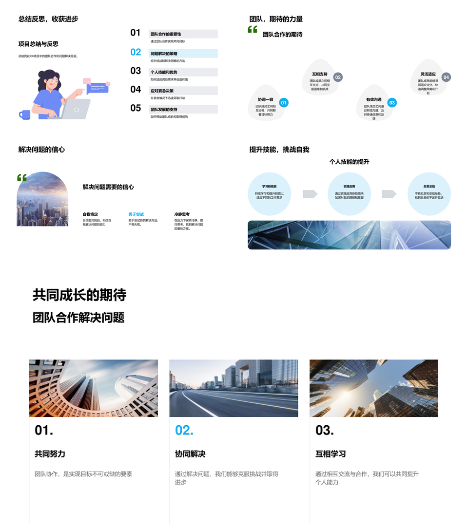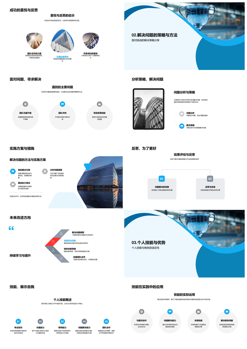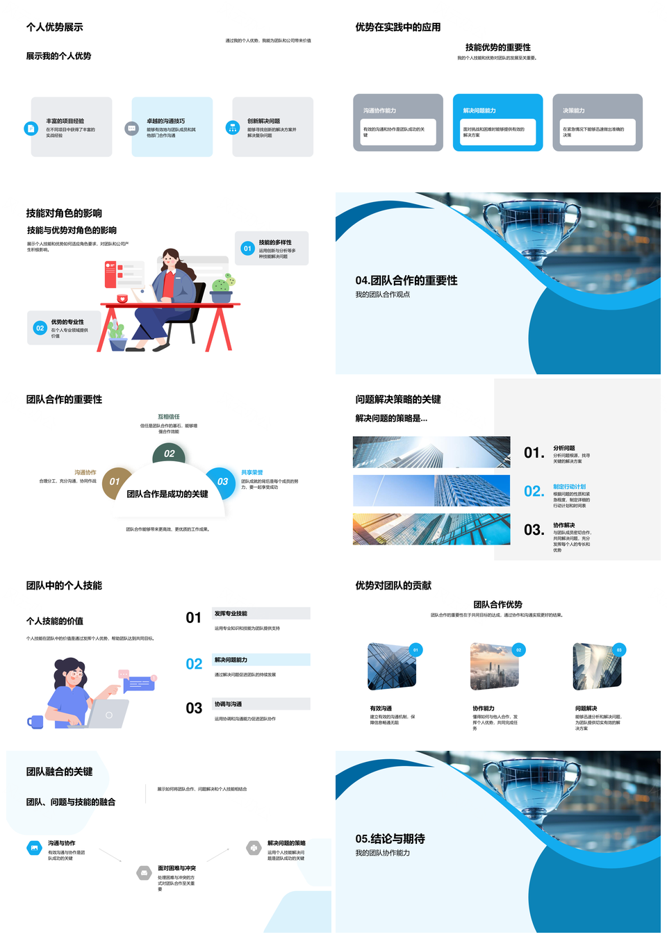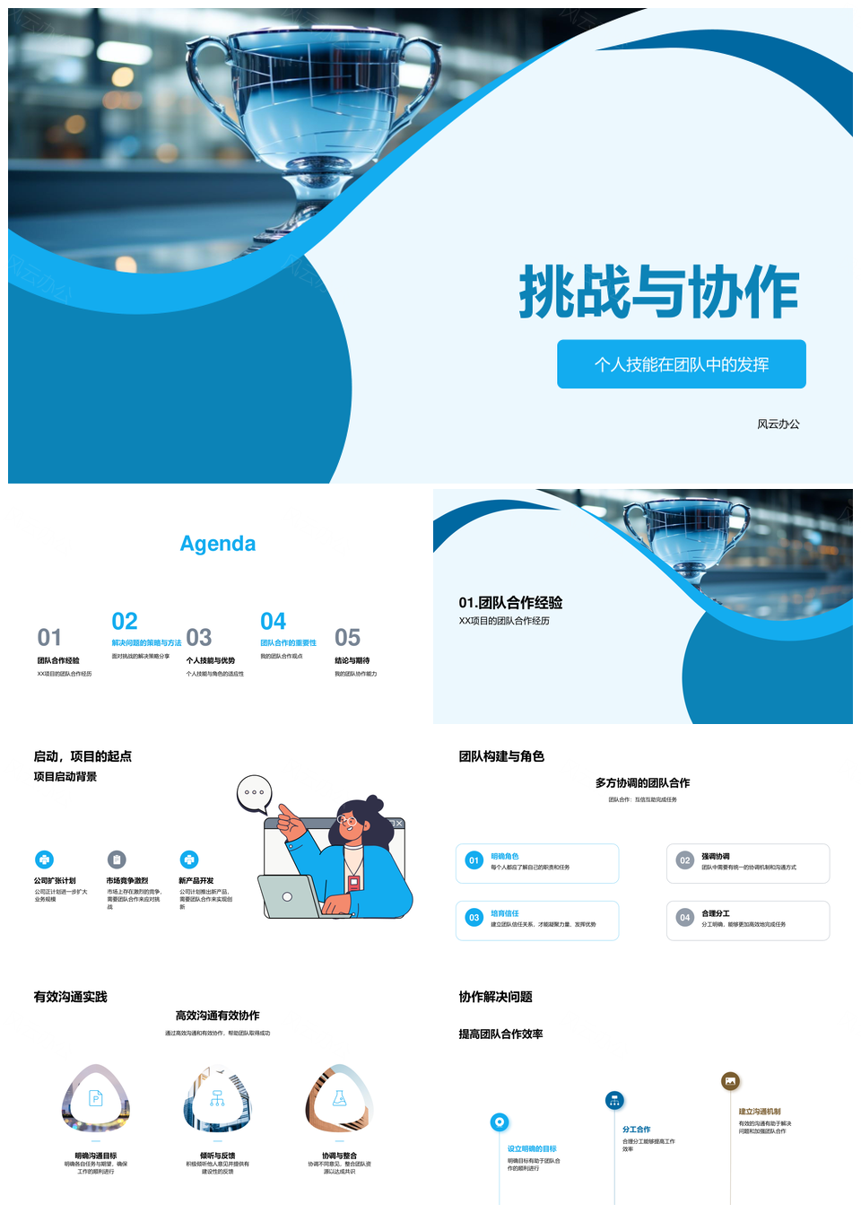 风云办公提供的团队协作挑战竞聘展个人技能解题策略PPT模板,下载格式为pptx,一共33页,作品中文字及图均可以修改和编辑,图片更改请在作品中右键图片并更换,文字修改请直接点击文字进行修改。