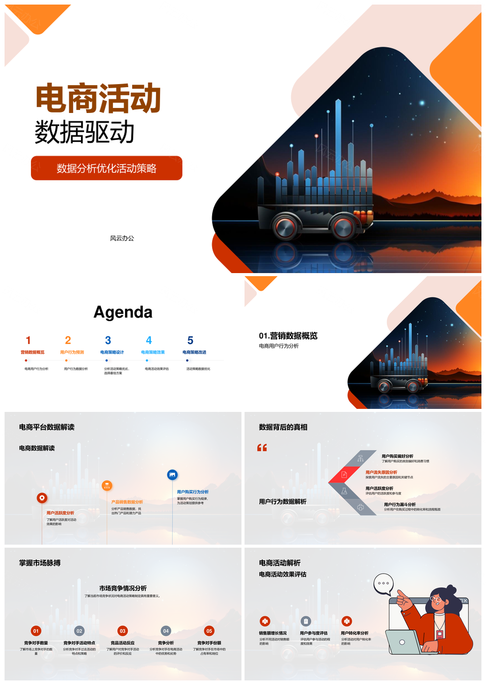 这是一张电商活动数据驱动用户行为预测市场竞争分析PPT模板,包含电商活动、数据、驱动、用户、行为、预测、市场、竞争、分析等主题内容,也可用作电商活动数据驱动用户行为预测、活动数据驱动用户行为预测市场竞争、数据驱动用户行为预测市场竞争分析、用户行为预测市场竞争分析、电商活动数据驱动用户行为、活动数据驱动用户行为预测、数据驱动用户行为预测市场、用户行为预测市场竞争分析、电商活动数据驱动、活动数据驱动用户、数据驱动用户行为预测、用户行为预测市场竞争、预测市场竞争分析、电商活动数据、活动数据驱动、数据驱动用户行为、用户行为预测、预测市场竞争、市场竞争分析、电商活动、数据驱动、用户行为、市场竞争等PPT场景使用。 风云办公提供的电商活动数据驱动用户行为预测市场竞争分析PPT模板,下载格式为pptx,一共33页,作品中文字及图均可以修改和编辑,图片更改请在作品中右键图片并更换,文字修改请直接点击文字进行修改。