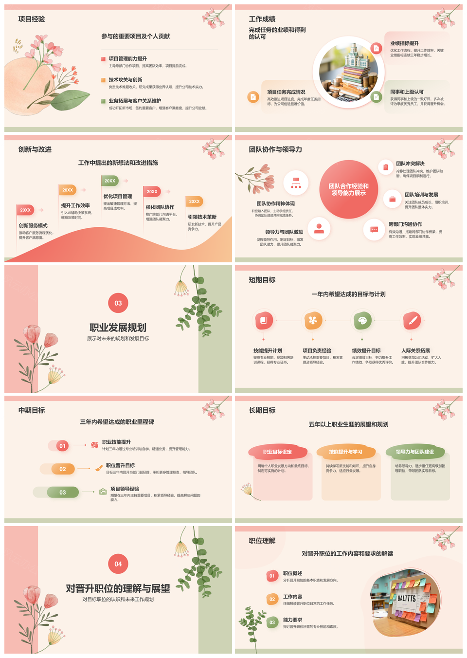 这是一张晋升述职竞聘个人能力业绩展示职业发展规划PPT模板,包含晋升、述职、竞聘、个人能力、业绩展示、职业发展、规划等主题内容,也可用作晋升述职竞聘个人能力、述职竞聘个人能力业绩、竞聘个人能力业绩展示、个人能力业绩展示职业、能力业绩展示职业发展、业绩展示职业发展规划、晋升述职竞聘个人、述职竞聘能力业绩、竞聘个人能力展示、个人能力职业发展、述职竞聘职业规划、晋升述职竞聘发展、晋升述职业绩展示、职业发展规划展示、竞聘发展展示规划等PPT场景使用。 风云办公提供的晋升述职竞聘个人能力业绩展示职业发展规划PPT模板,下载格式为pptx,一共20页,作品中文字及图均可以修改和编辑,图片更改请在作品中右键图片并更换,文字修改请直接点击文字进行修改。