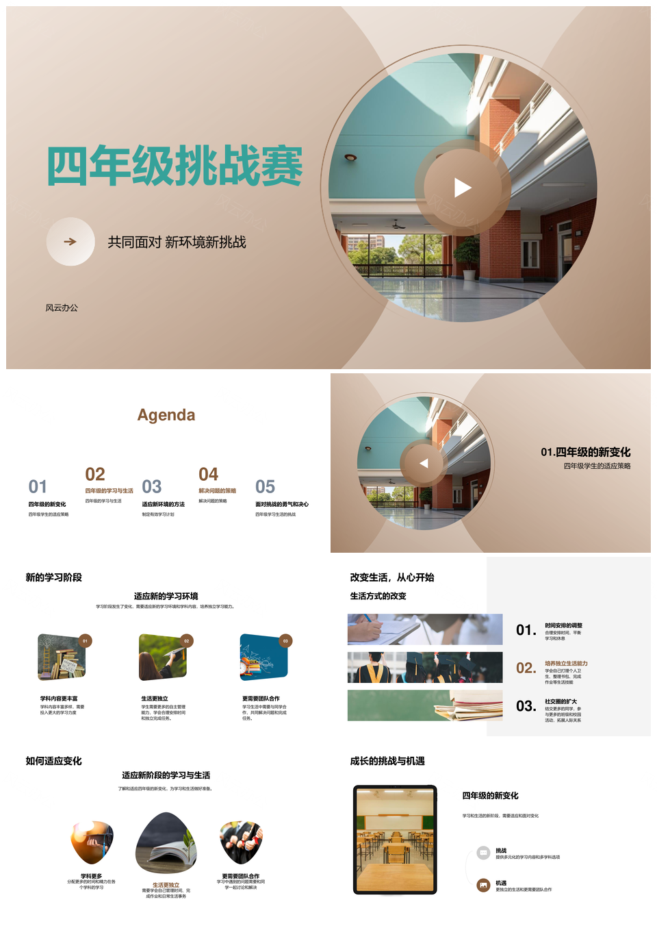 四年级新校楼安全教育挑战赛PPT模板推荐