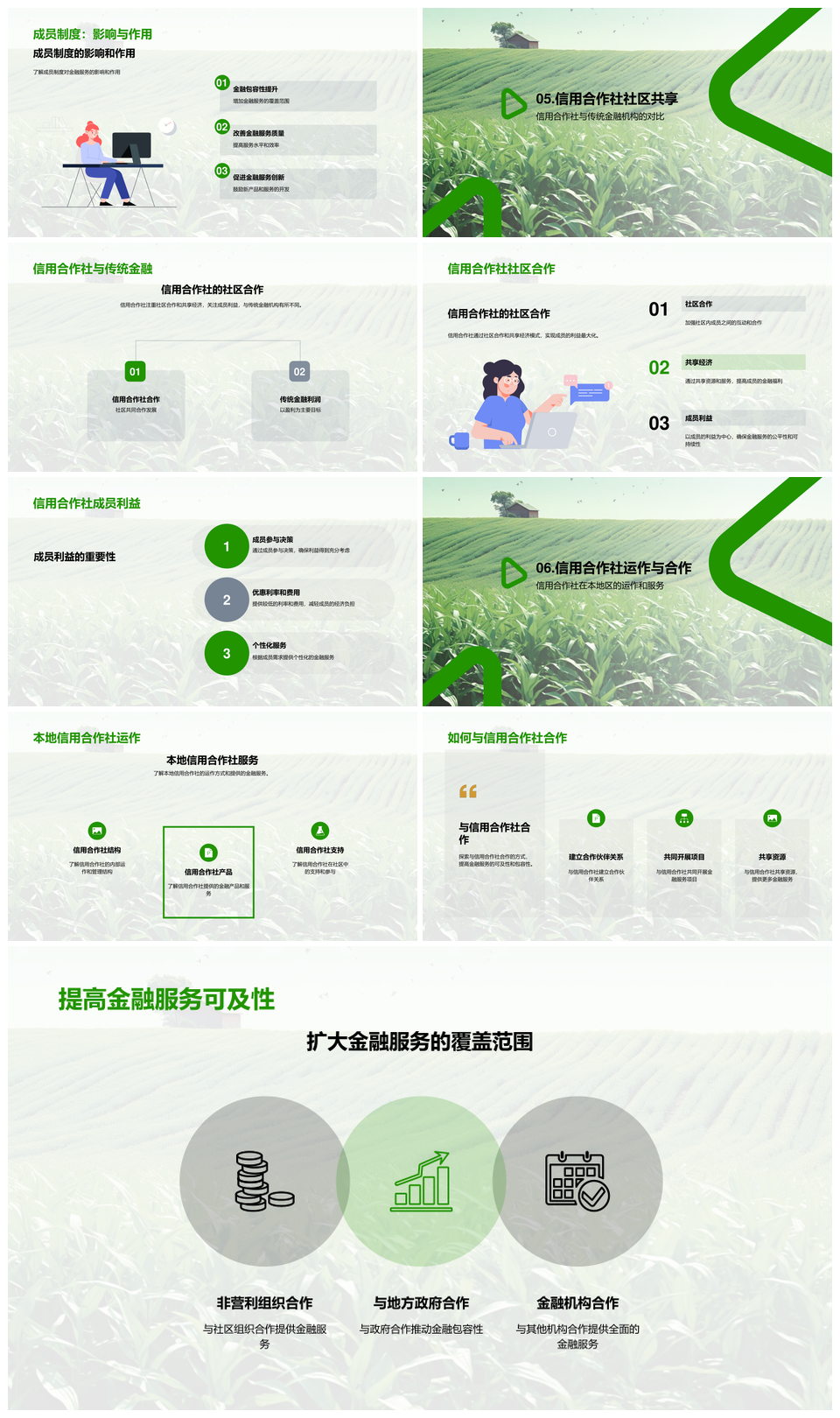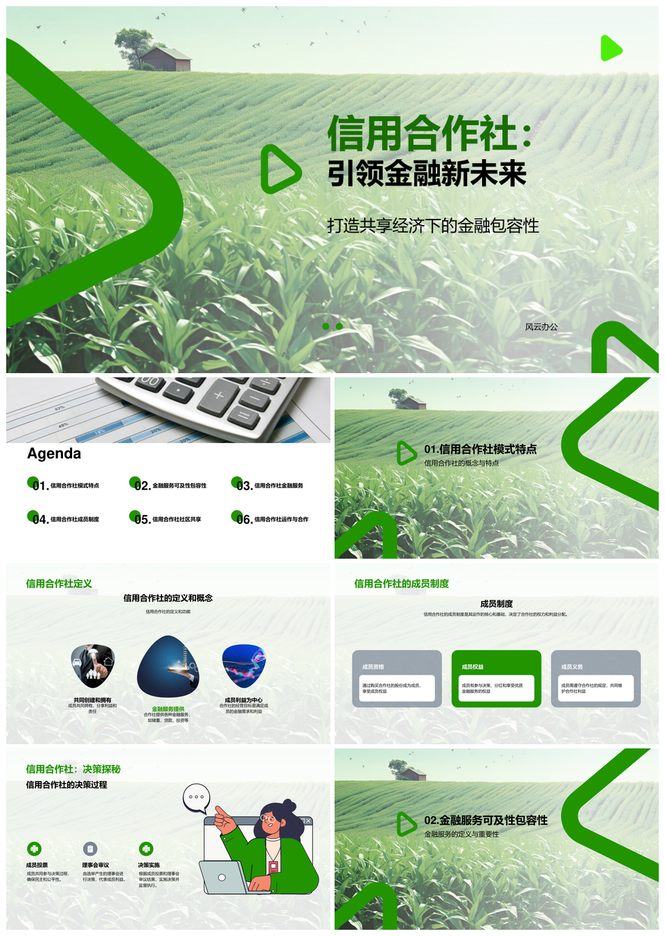 风云办公提供的信用合作社共享金融引领包容可及未来PPT模板,下载格式为pptx,一共27页,作品中文字及图均可以修改和编辑,图片更改请在作品中右键图片并更换,文字修改请直接点击文字进行修改。