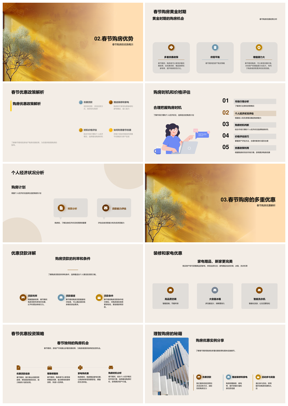 这是一张2025春节购房优惠时机价格评估经济指南PPT模板,包含2025、春节、购房、优惠、时机、价格、评估、经济、指南等主题内容,也可用作2025春节购房优惠、春节购房优惠时机、购房优惠时机价格、优惠时机价格评估、时机价格评估经济、价格评估经济指南、2025春节购房、春节购房优惠、购房优惠时机、优惠时机价格、时机价格评估、价格评估经济、评估经济指南、2025春节、春节购房等PPT场景使用。 风云办公提供的2025春节购房优惠时机价格评估经济指南PPT模板,下载格式为pptx,一共28页,作品中文字及图均可以修改和编辑,图片更改请在作品中右键图片并更换,文字修改请直接点击文字进行修改。