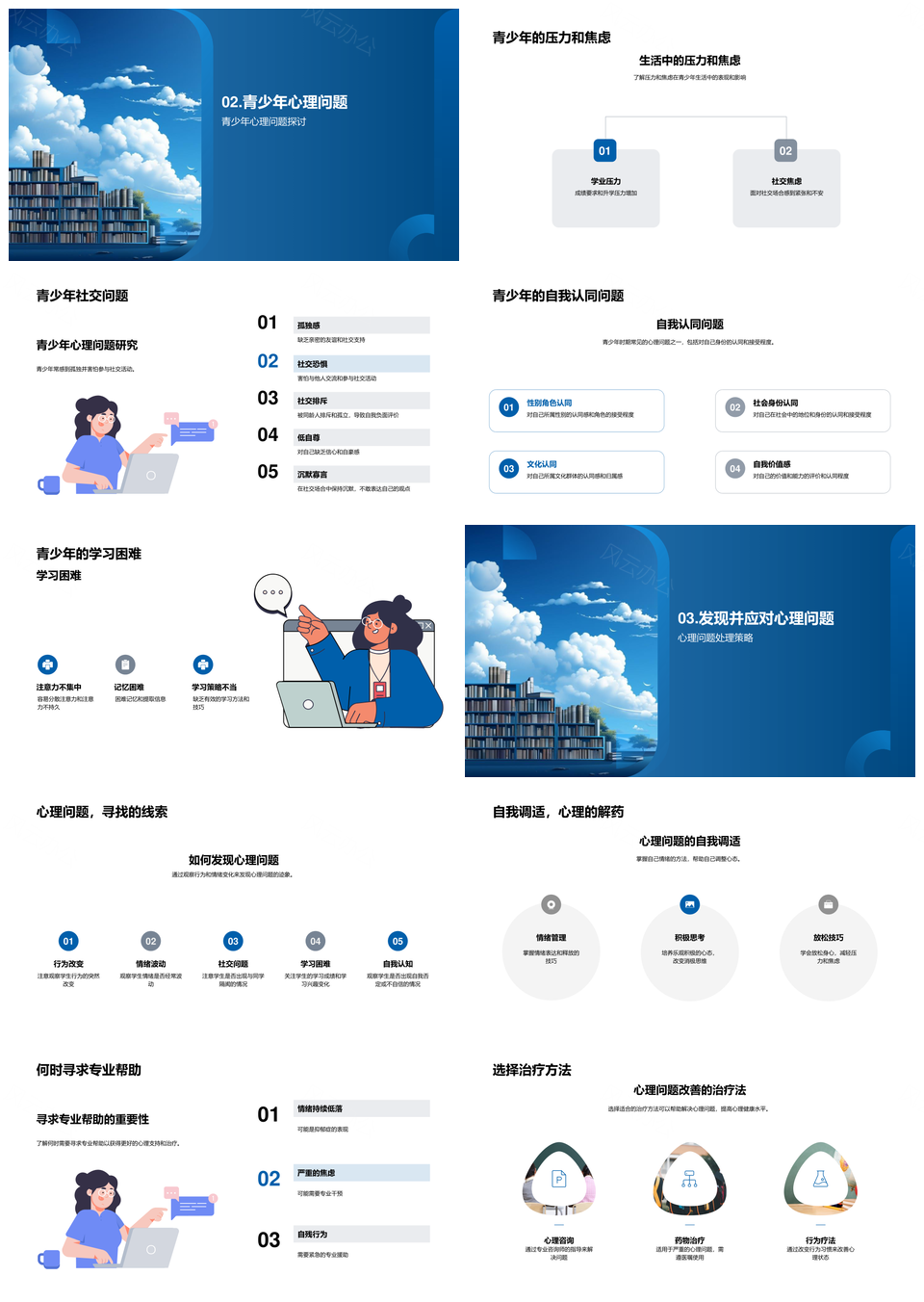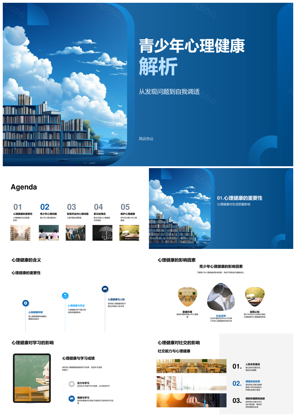 风云办公提供的青少年心理健康问题调适与压力应对PPT模板,下载格式为pptx,一共28页,作品中文字及图均可以修改和编辑,图片更改请在作品中右键图片并更换,文字修改请直接点击文字进行修改。