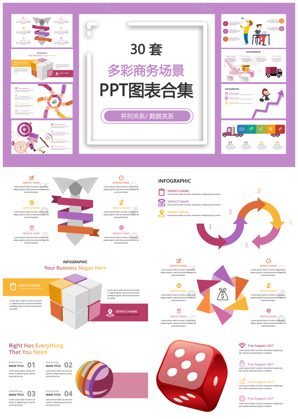 风云办公提供的多彩商务场景并列关系数据关系PPT图表合集,下载格式为pptx,一共31页,作品中文字及图均可以修改和编辑,图片更改请在作品中右键图片并更换,文字修改请直接点击文字进行修改。